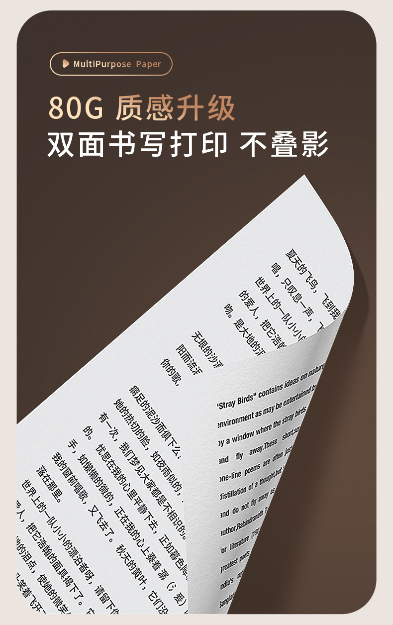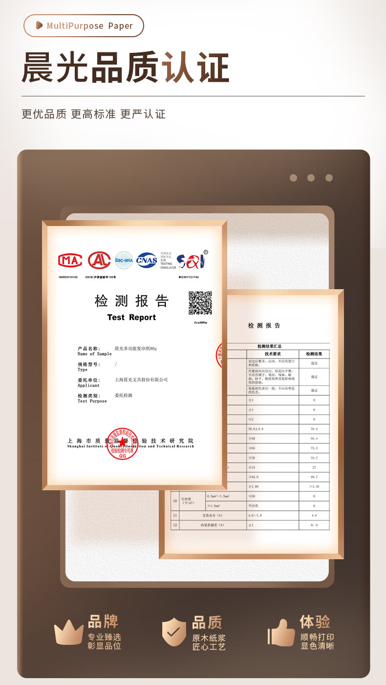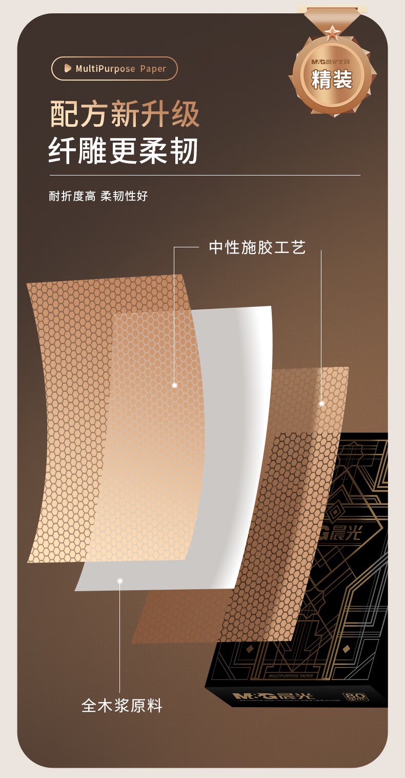 晨光(M&G) 金晨光 A4 80g 加厚双面打印纸 高档品质款复印纸 500张/包 5包/箱(2500张) APYVS39 单位:箱