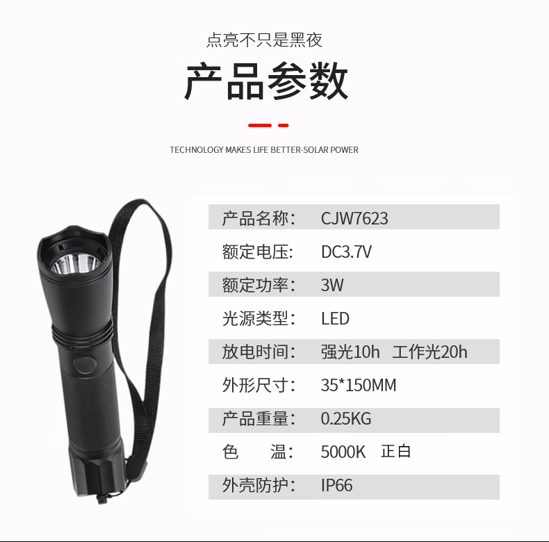 旭升(CXS) CJW7623 3W IP66 强光10h 工作光20h DC3.7V 色温5000K 正白 LED巡检电筒 (计价单位:个) 黑色
