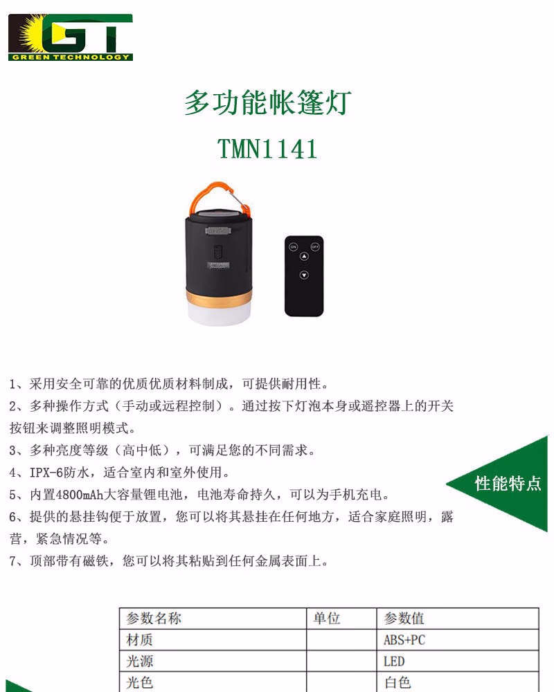 • 商品名称:吉特(GT) TMN1141 4W 多功能帐篷灯 (计价单位:盏) 黑色 主机