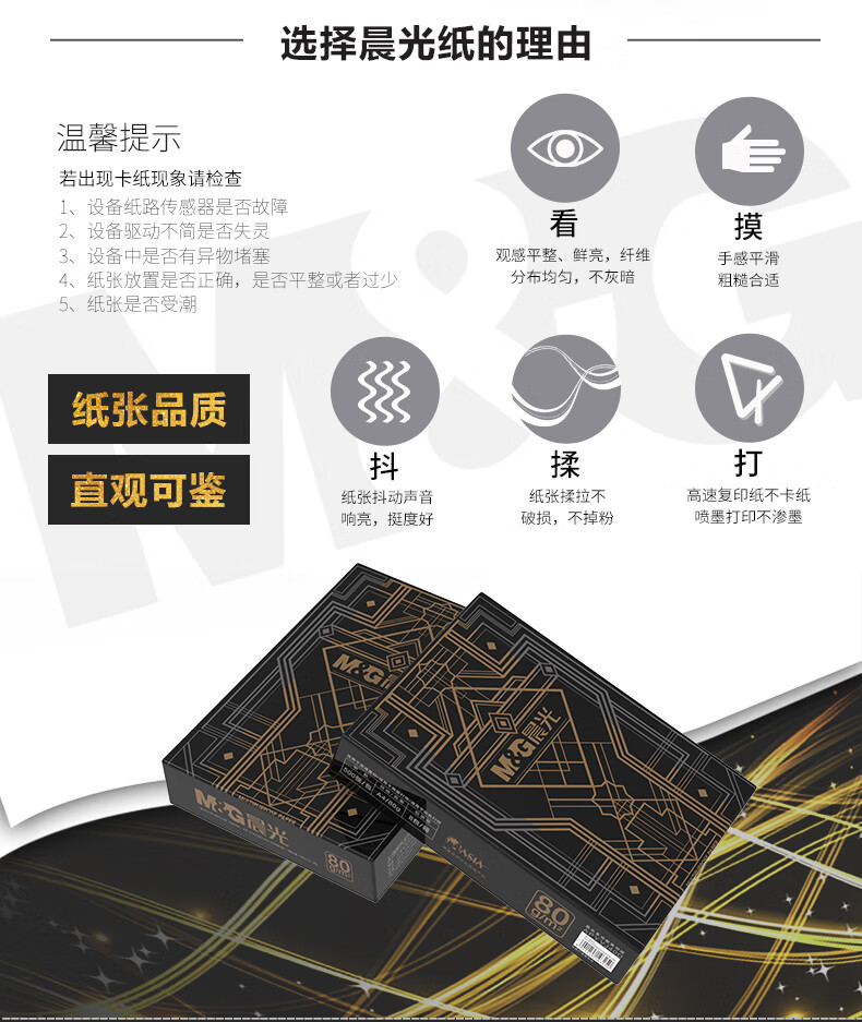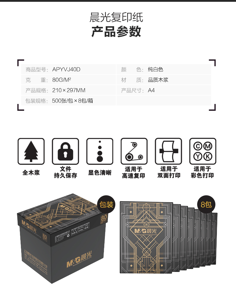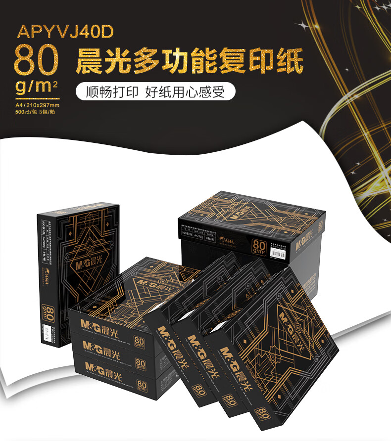 晨光(M&G) 金晨光 A4 80g 加厚双面打印纸 高档品质款复印纸 500张/包 8包/箱(4000张) APYVJ40 单位:箱