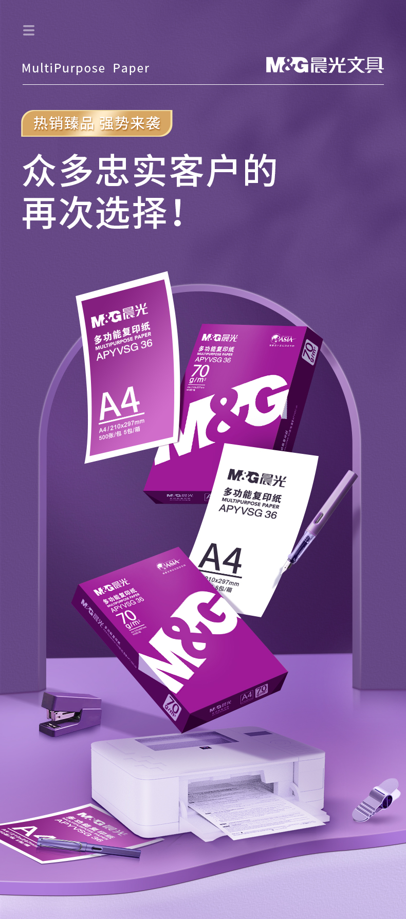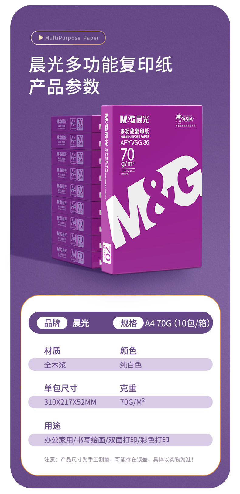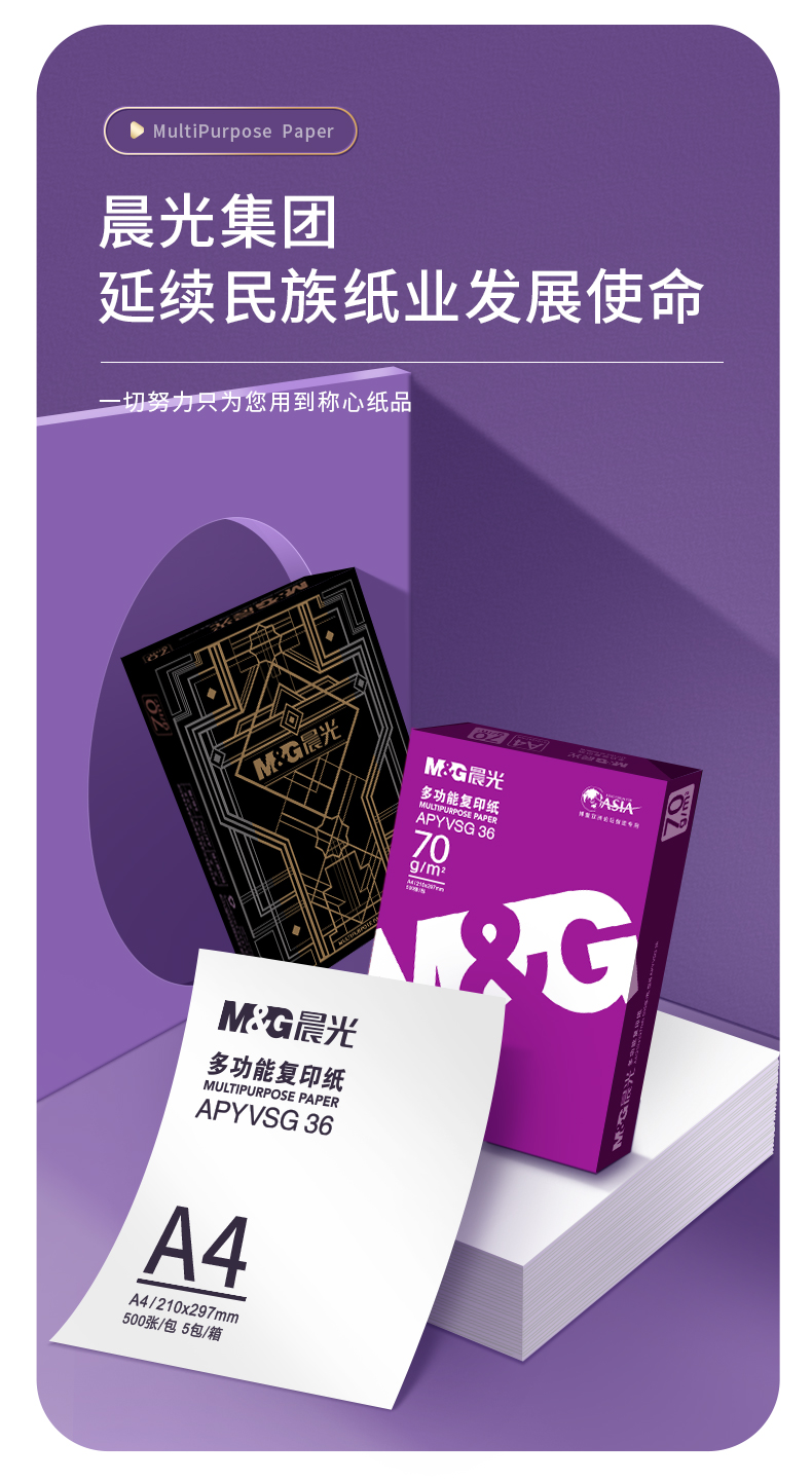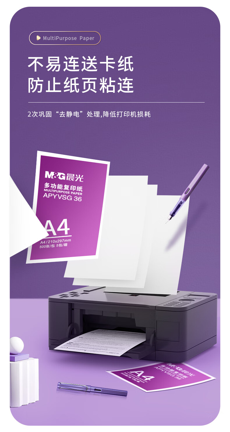 晨光(M&G)紫晨光 A4 70g 多功能双面打印纸 热销款复印纸 500张/包 10包1箱(整箱5000张)APYVQAS0 单位:箱