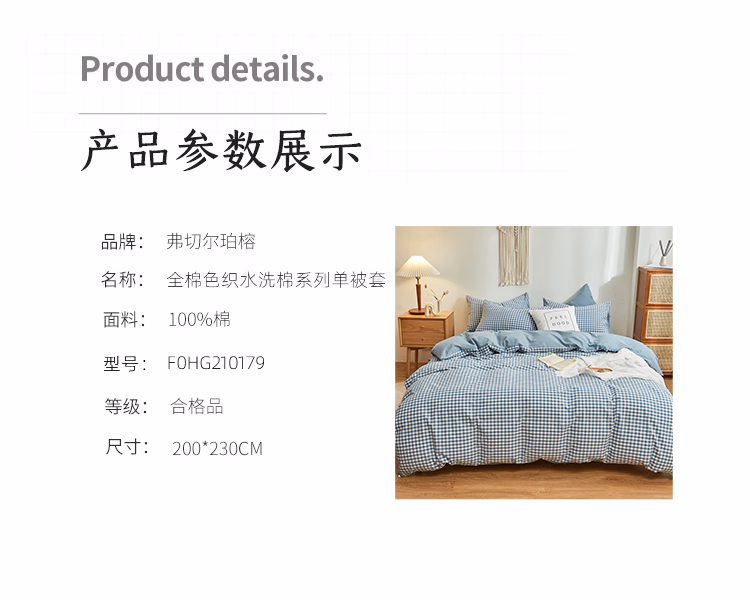 弗切尔珀榕 F0HG210179 /200*230cm简约舒适全棉色织水洗 被套 1.00 件/条 (计价单位:条) 蓝鲤