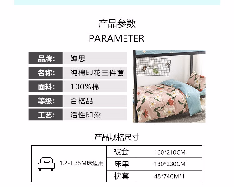 婵思 TJ0NH02100672 160*210cm 纯棉印花月影花明系列 三件套 (计价单位:套) 月影花明