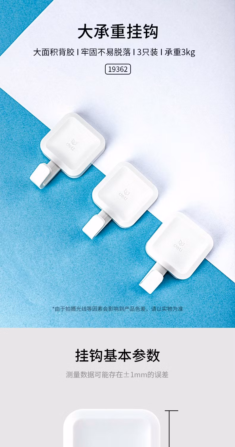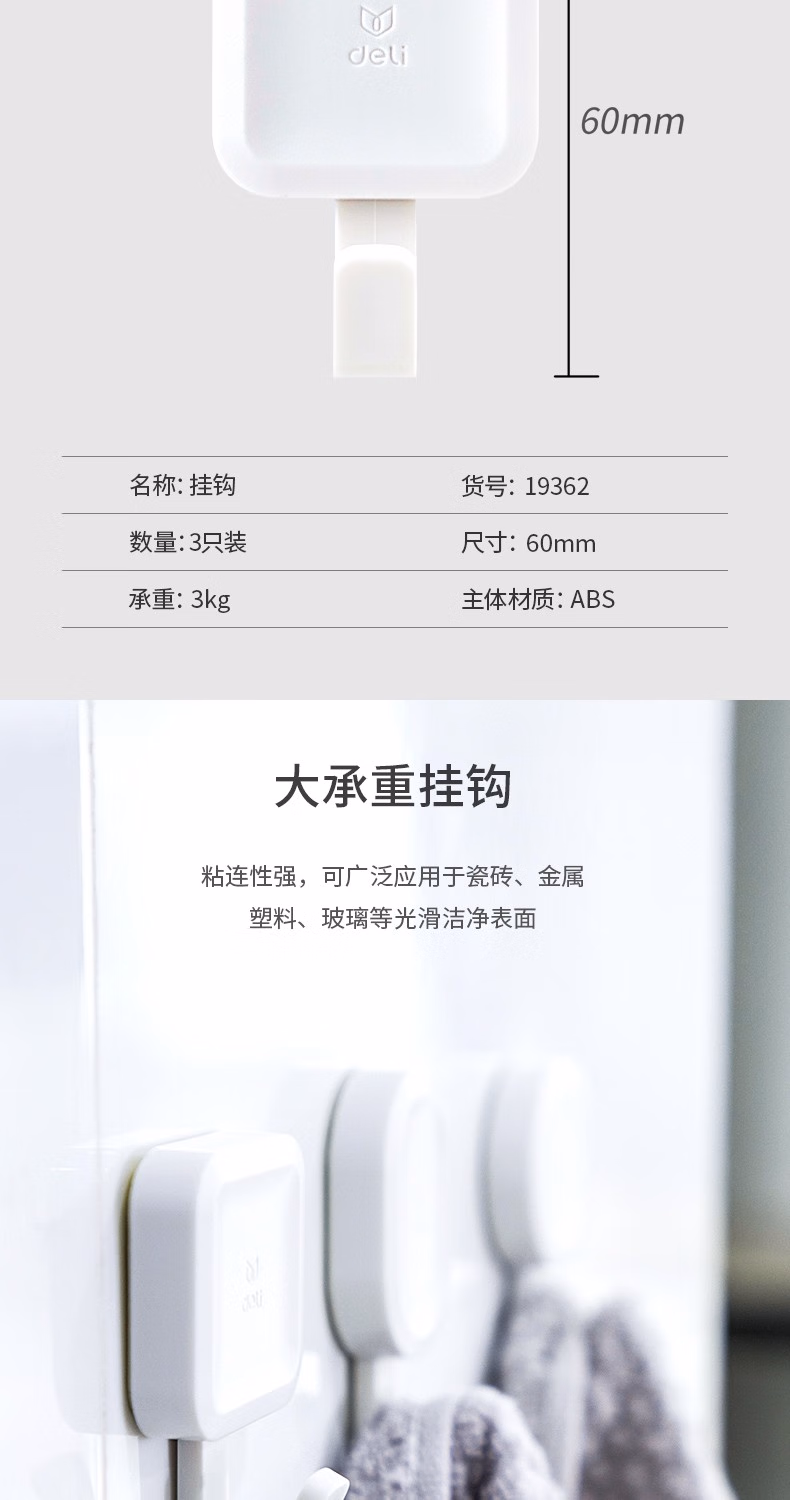 得力(deli) 19360 3kg 圆形挂钩 3.00 个/卡 (计价单位:卡) 白色
