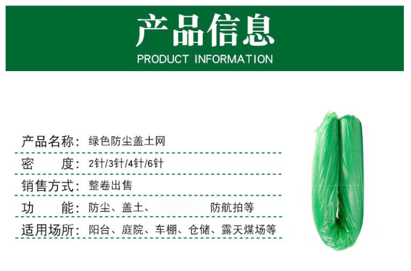 盖土网防尘网建筑工地覆盖绿网绿化网施工绿色黑色盖土盖煤盖沙网 绿色6针8米宽50米长