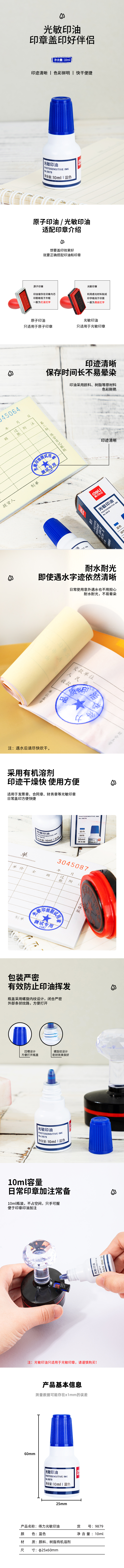 得力 9879 10ml 光敏印油 (蓝色) (瓶)