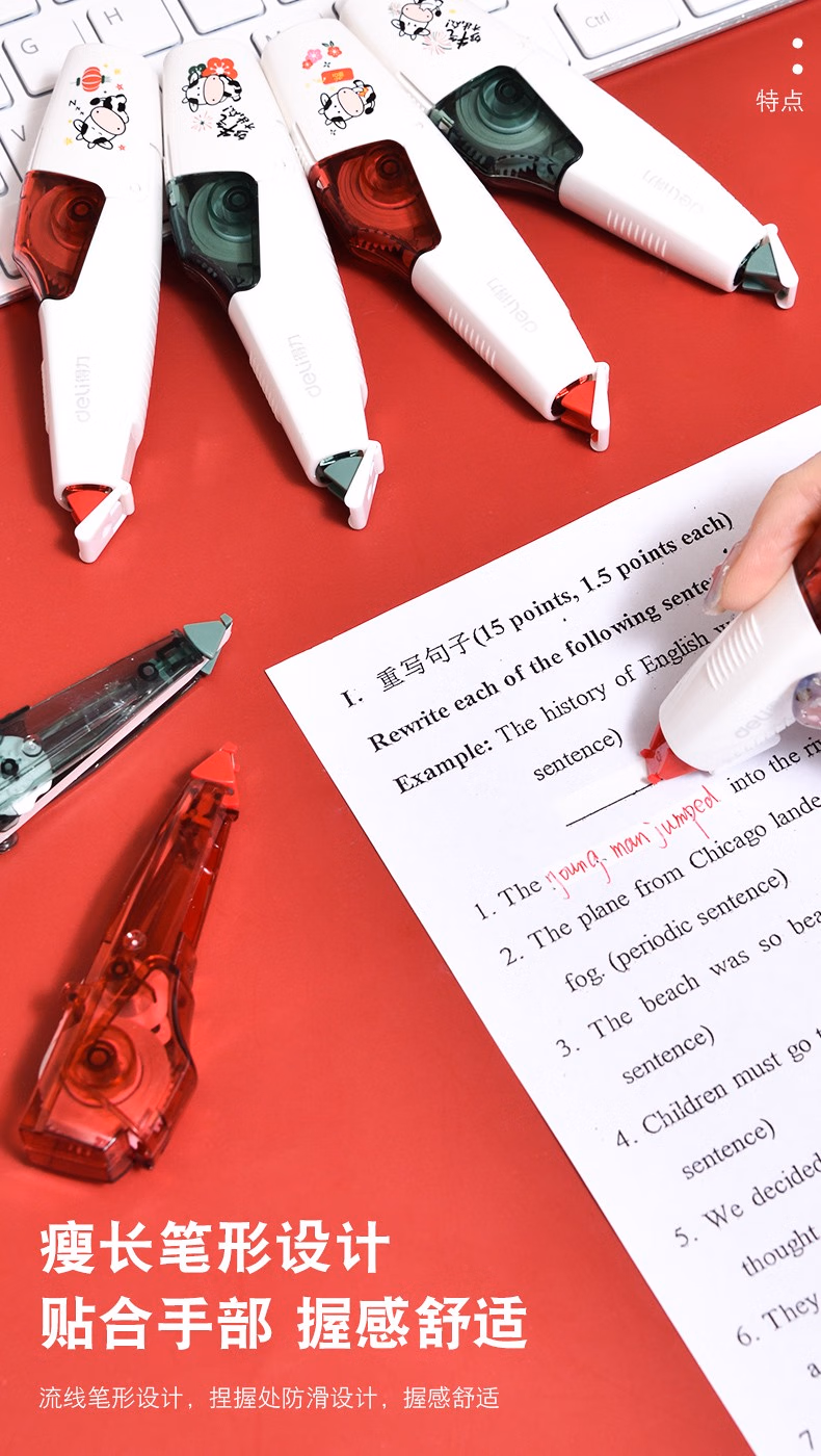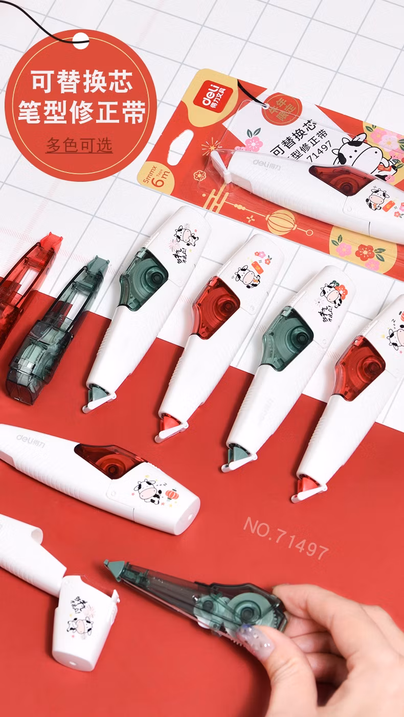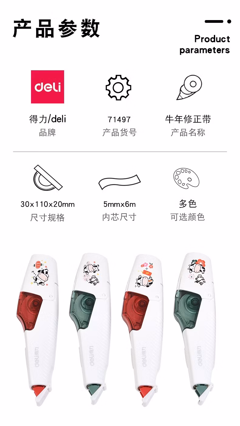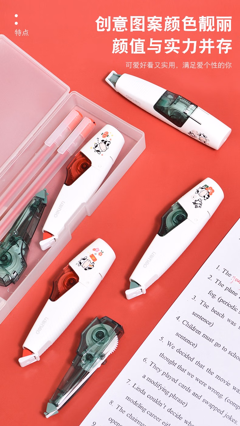 得力(deli) 修正带可换替芯改正带学生用小型便携迷你彩色卡通图案涂改带大容量改正带实惠装 71497单个装颜色随机