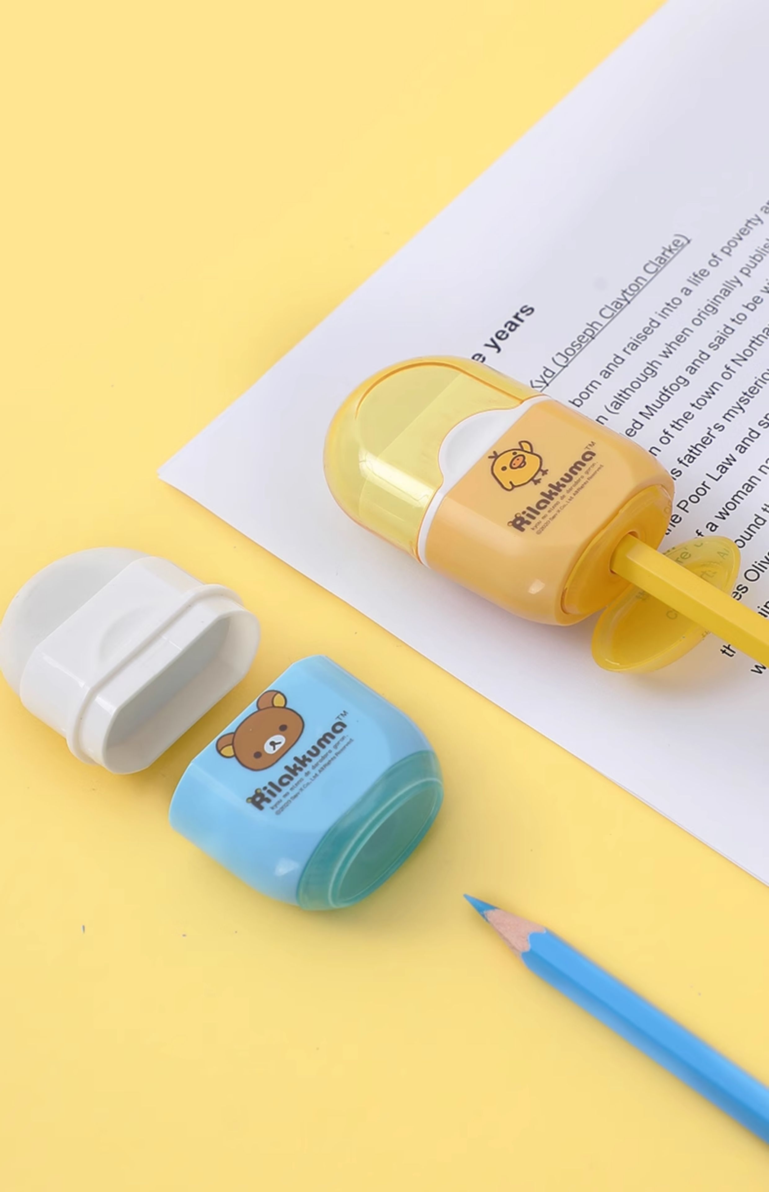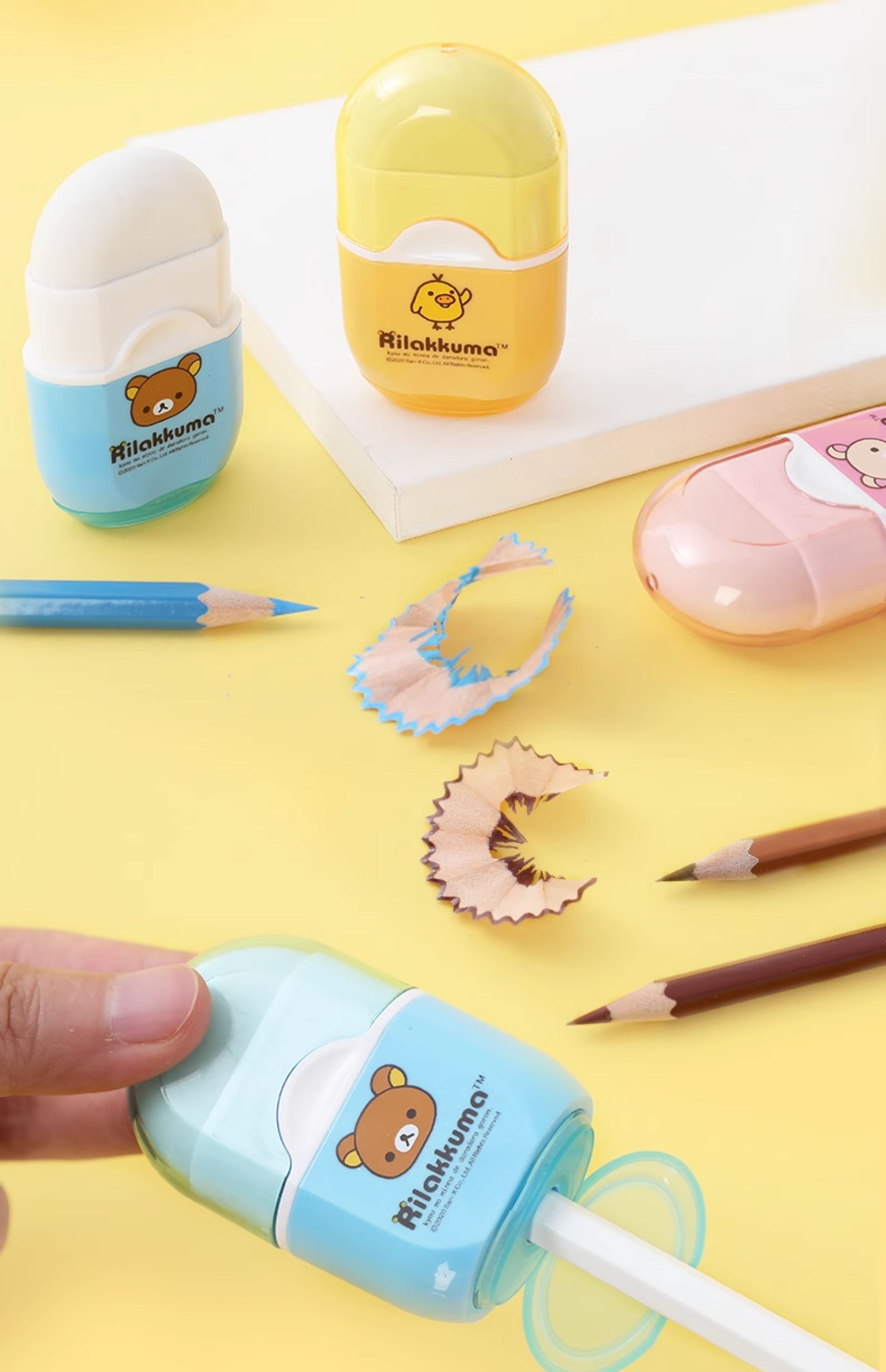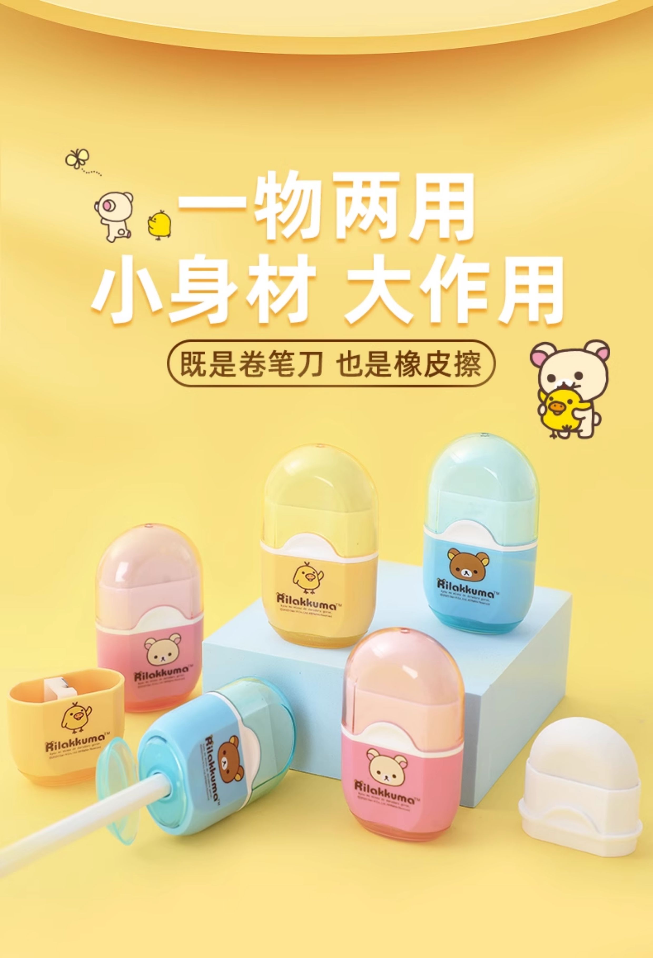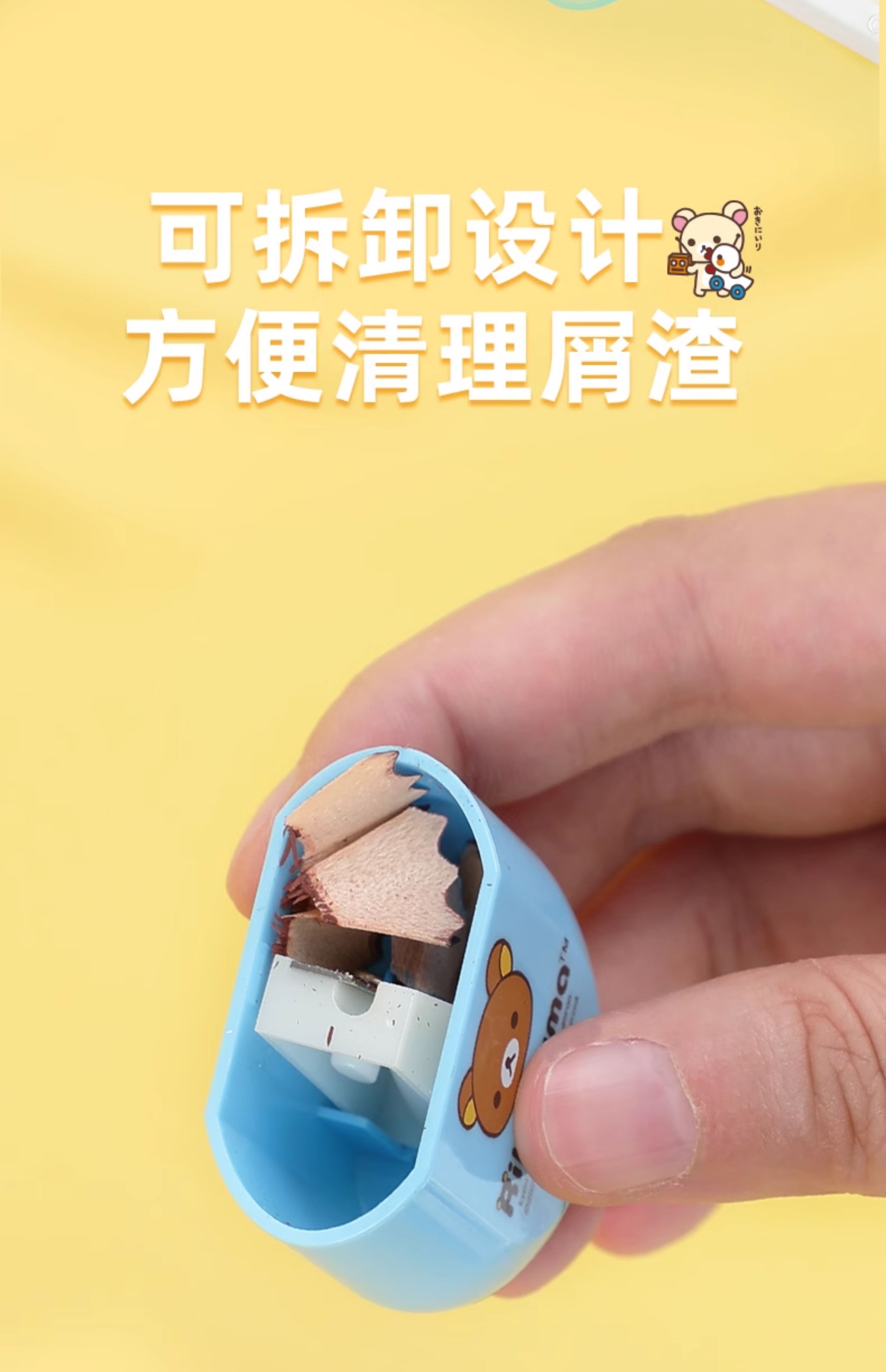 爱好69501轻松熊橡皮擦卷笔刀二合一多功能削笔器中小学生小型便携转笔刀铅笔刀削笔刀幼儿园儿童铅笔 蓝色多功能卷笔刀1个