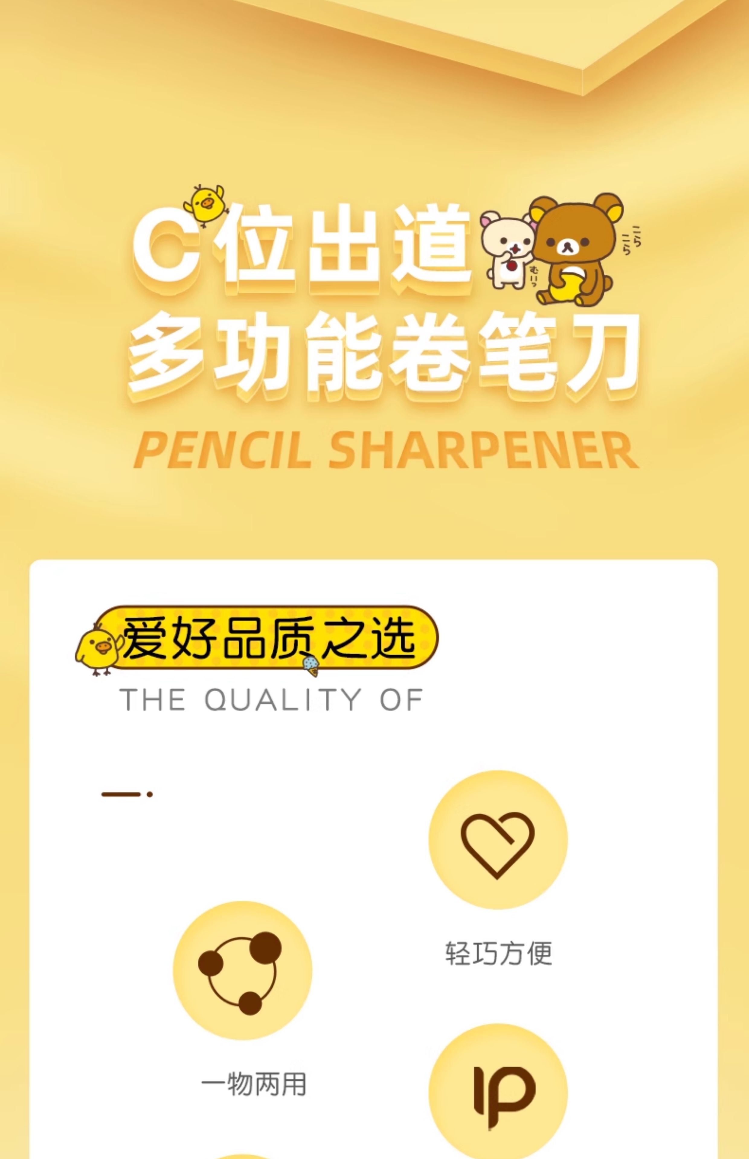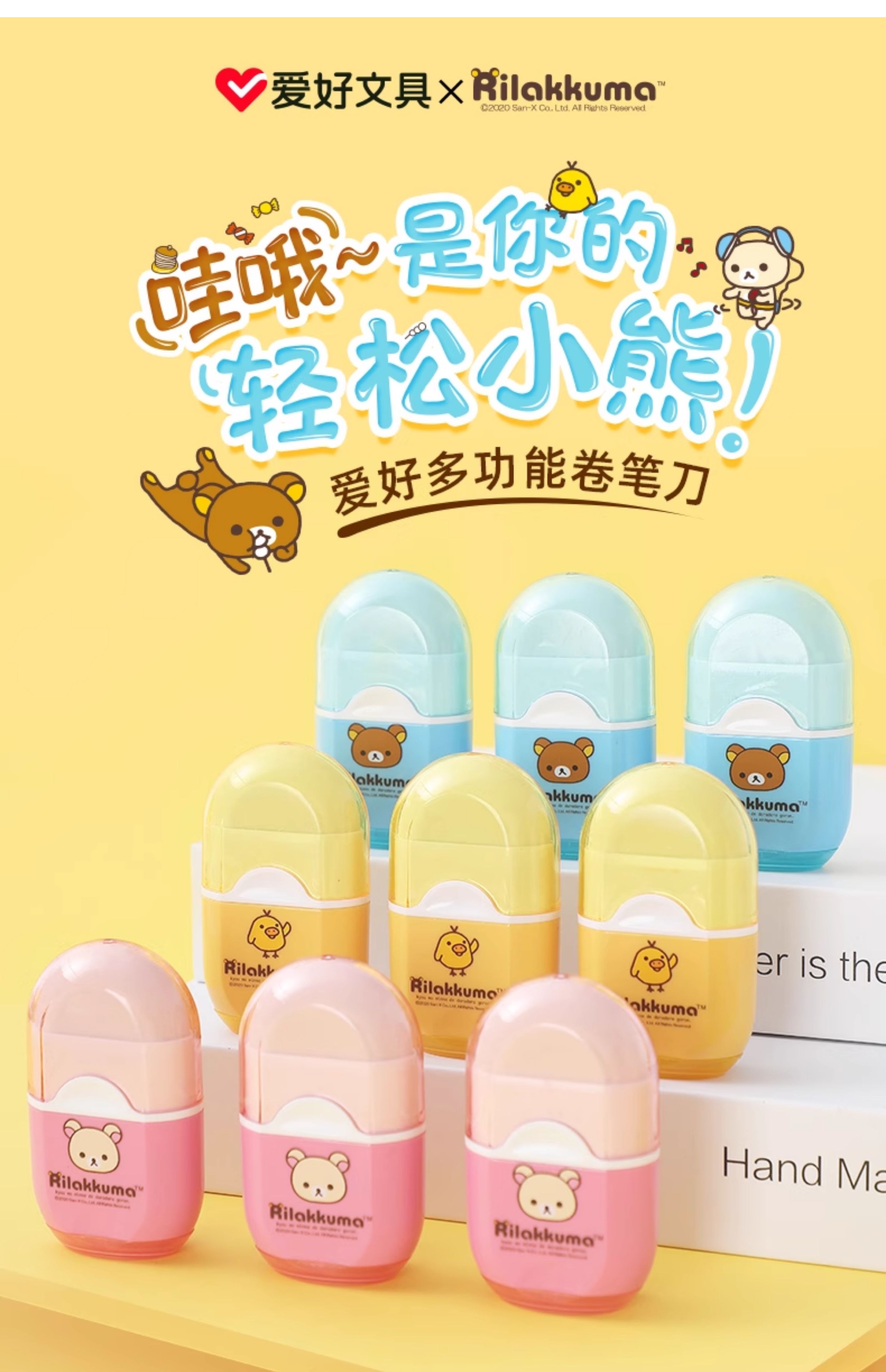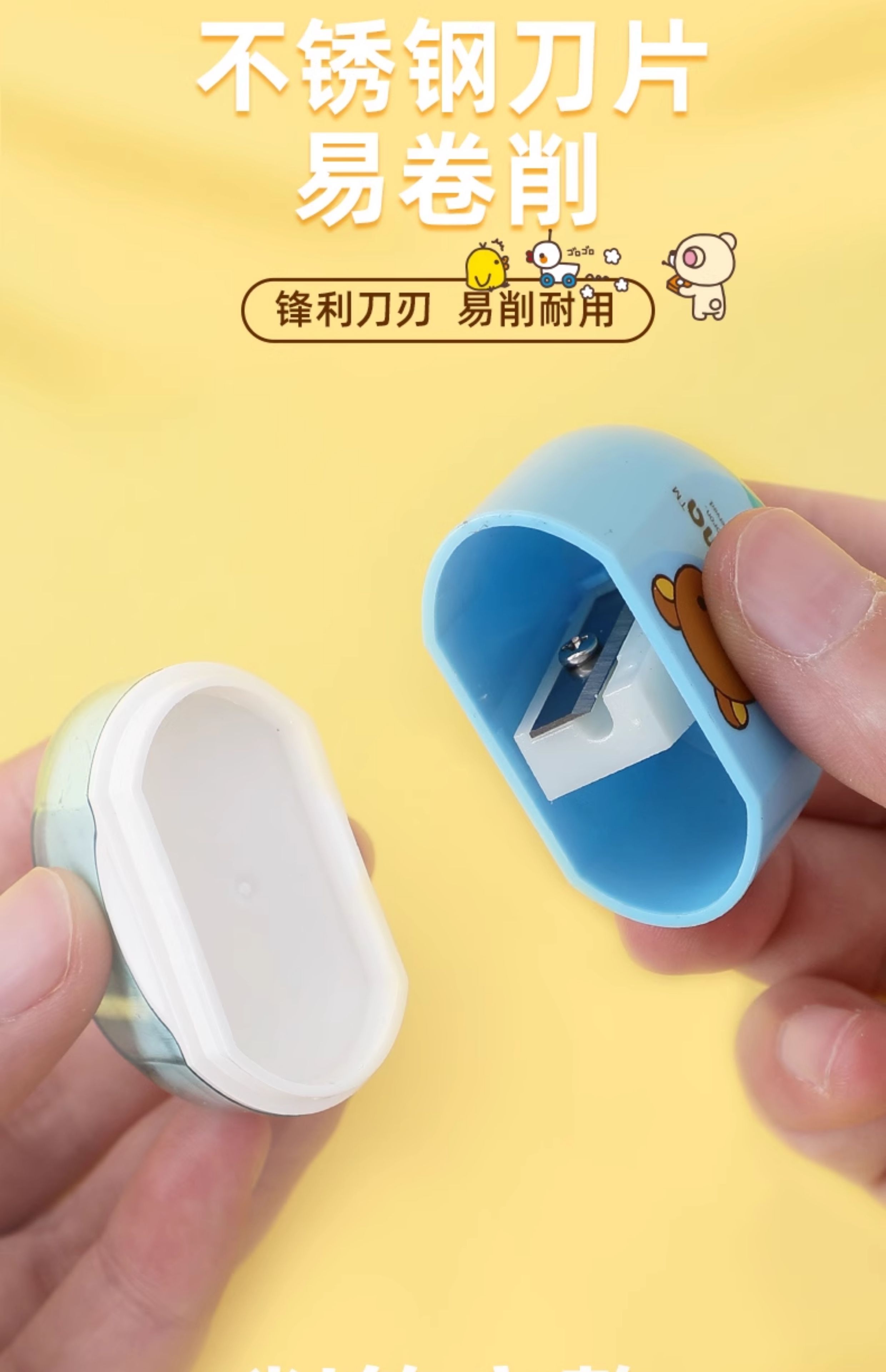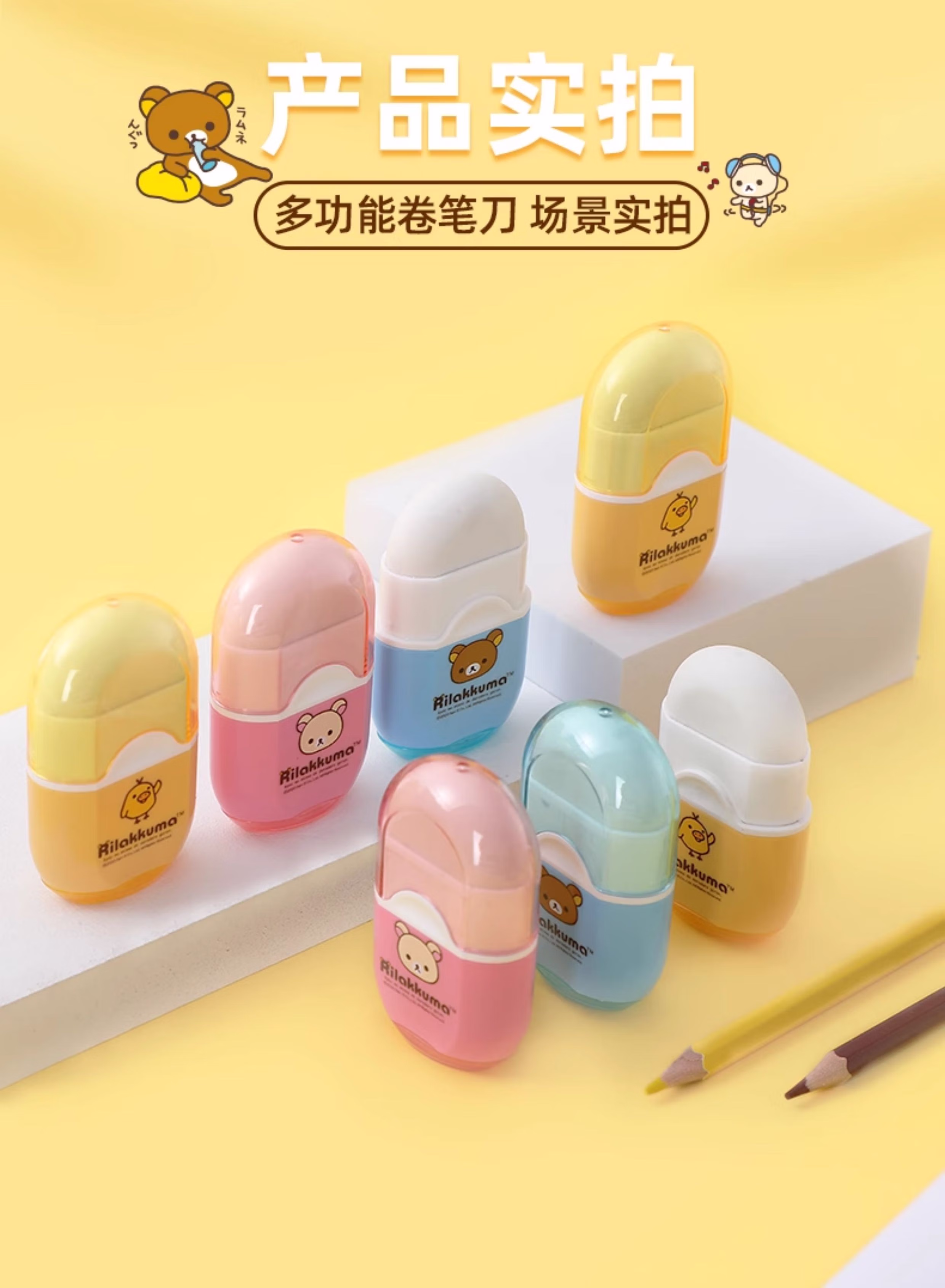 爱好69501轻松熊橡皮擦卷笔刀二合一多功能削笔器中小学生小型便携转笔刀铅笔刀削笔刀幼儿园儿童铅笔 蓝色多功能卷笔刀1个