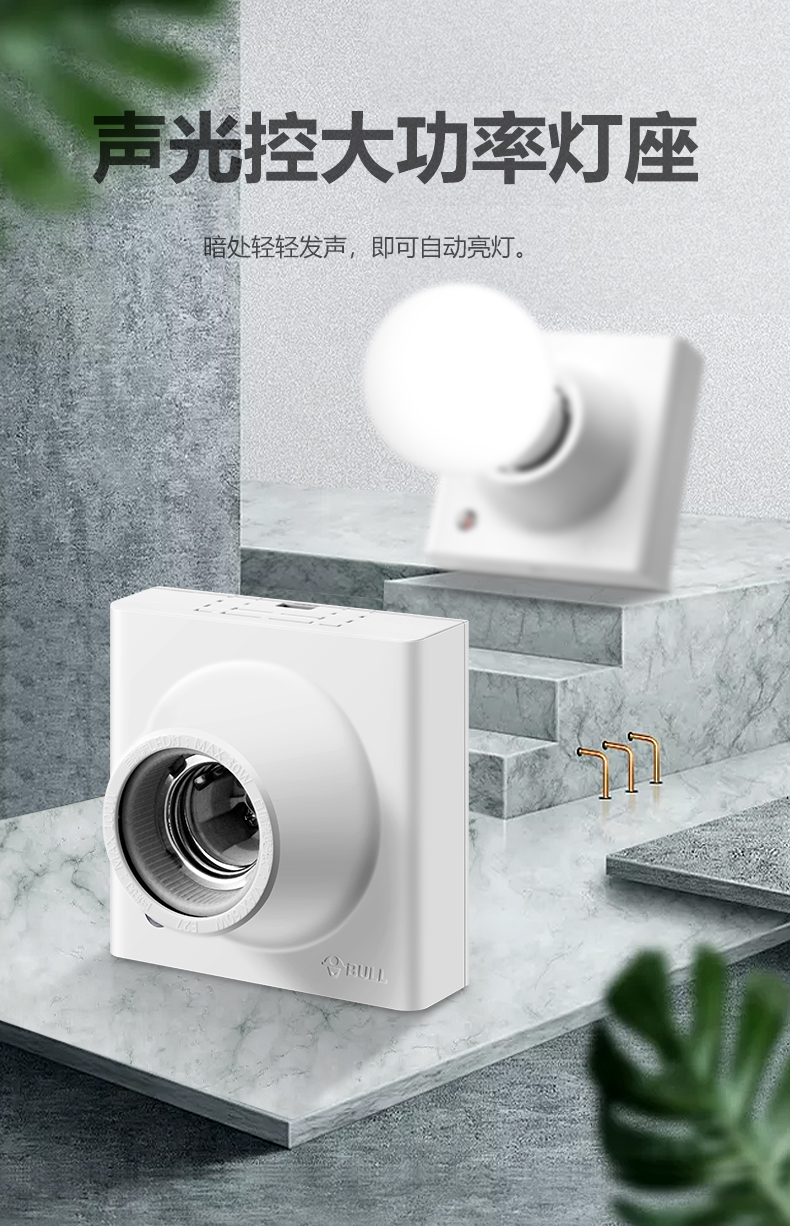 公牛开关插座面板 楼道声控开关LED灯座 大功率声光控感应灯座螺口E27 G09明装灯座 G09D1(率声光控感应灯座) 单位:个