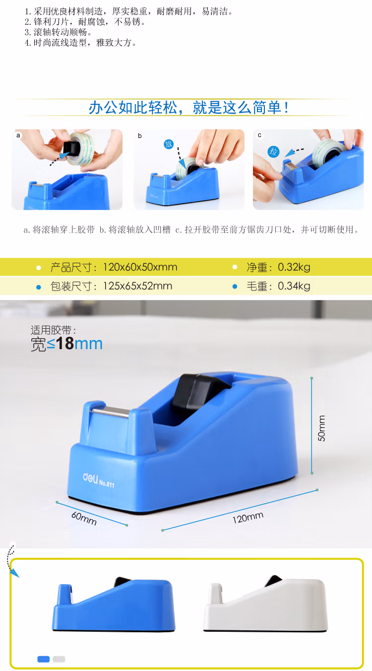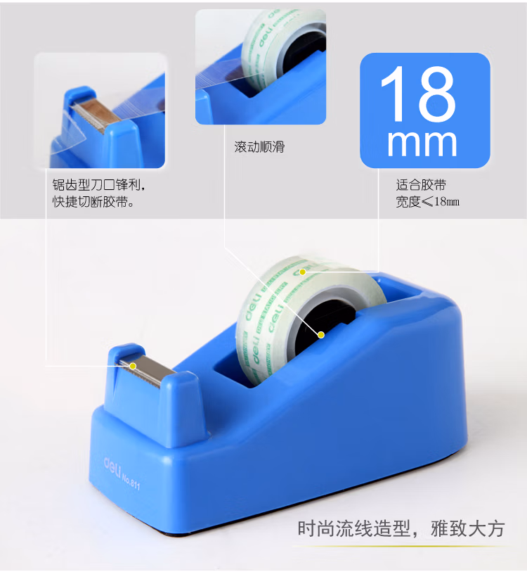 得力(deli)小号胶带座切割器封箱器(胶带宽度 ≤18mm) 灰色811