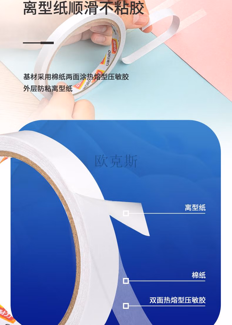 得力(deli)文具30400胶带棉纸双面胶带双面粘胶9mm宽两面胶 胶带32卷/袋 32卷-9mm*10y