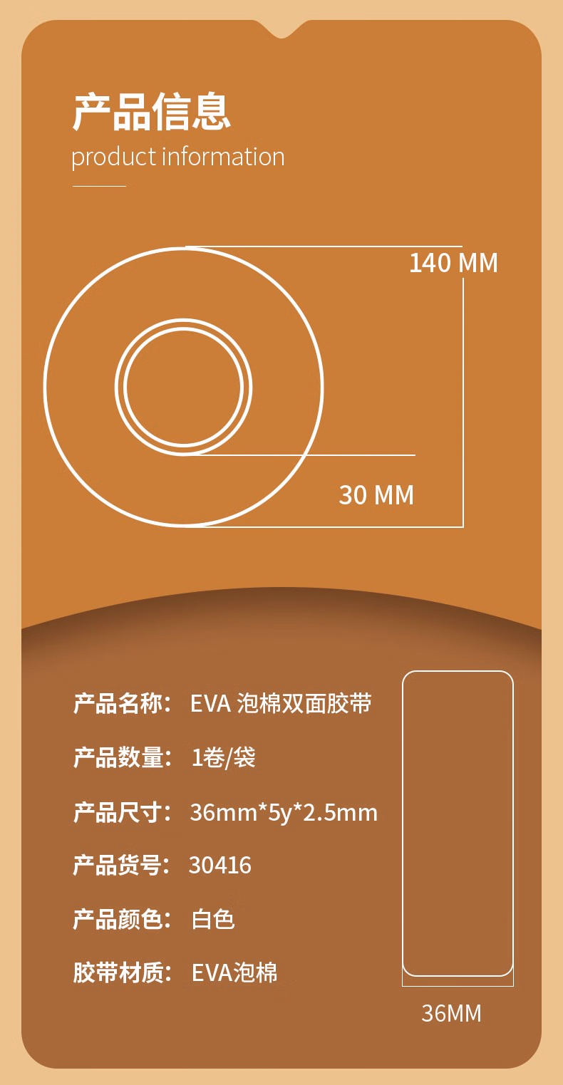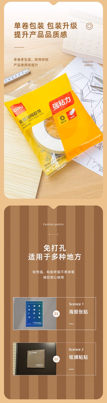 得力(deli)海绵胶泡棉双面胶30416 双面胶带 强力 泡沫胶 30416