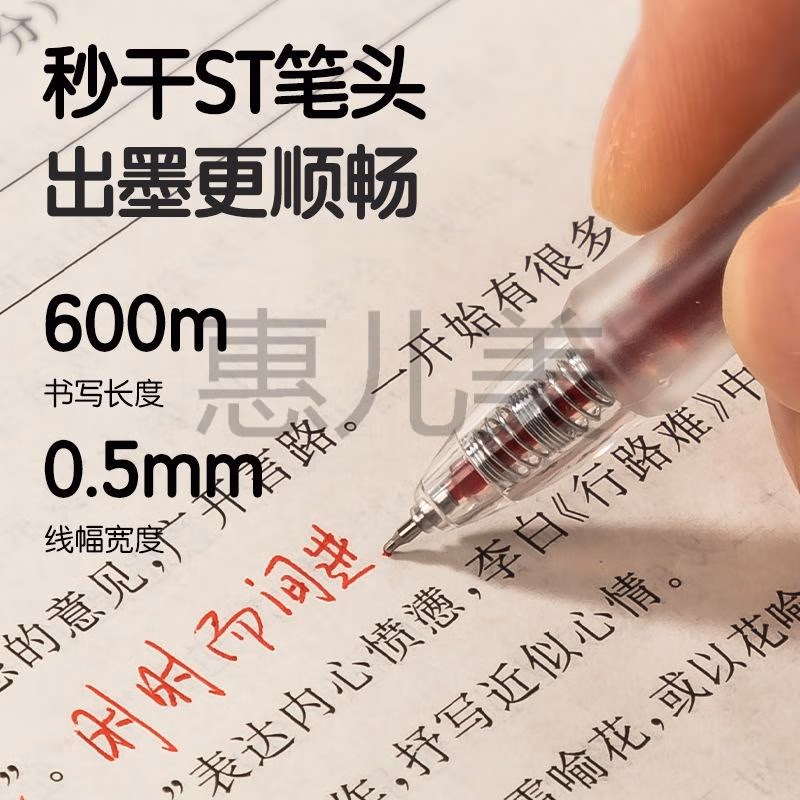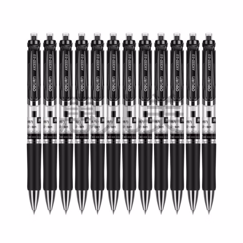 得力(deli)按动中性笔简约时尚学生书写0.5水笔办公签字笔文具用品批发 S01/黑色【12支装】 0.5mm
