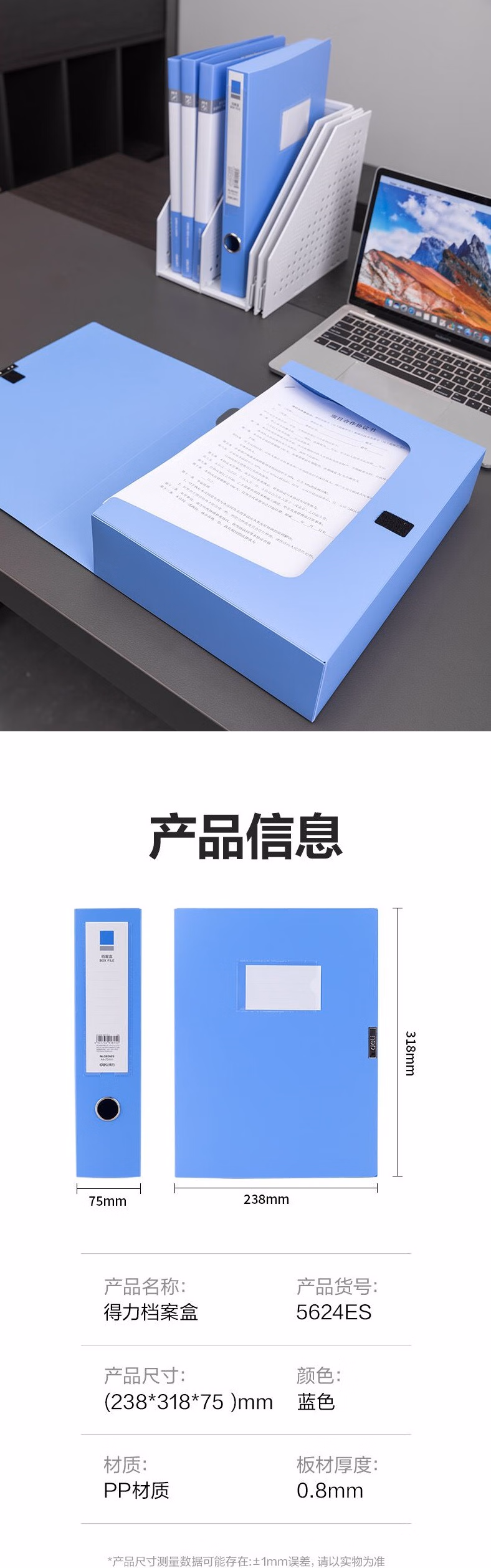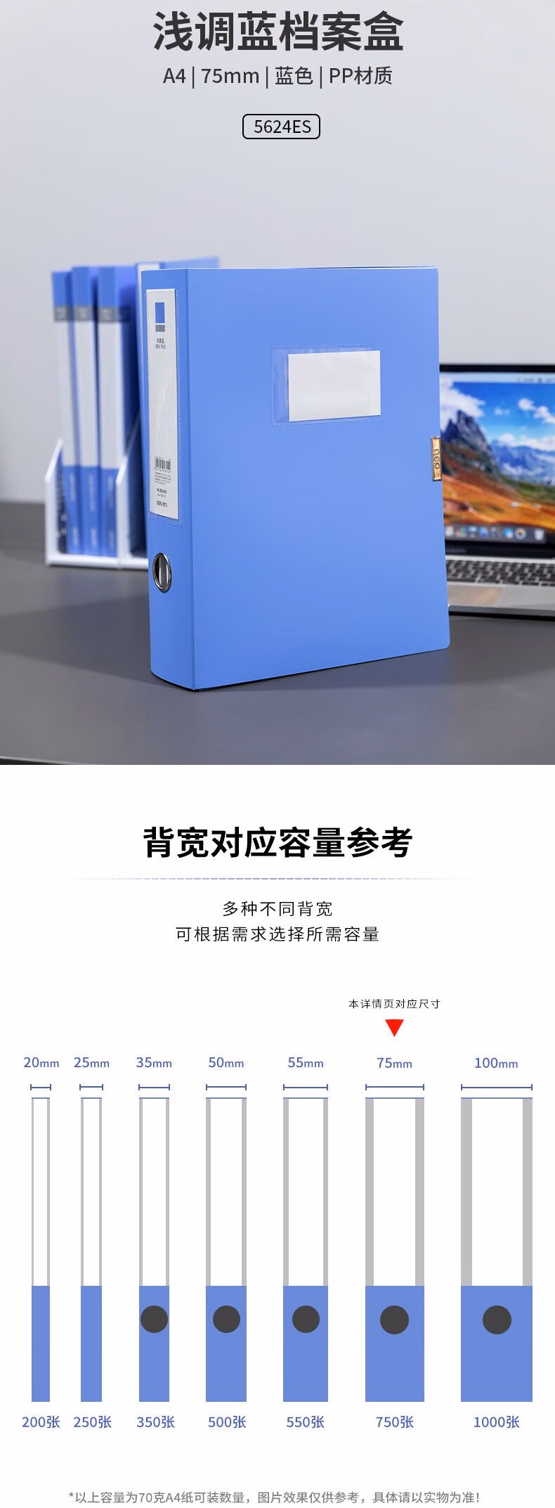 得力(deli)5624ES档案盒75mm分类管理盒可以大容量塑料A4资料收纳盒 5624es-背宽75mm一个
