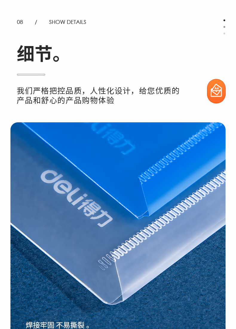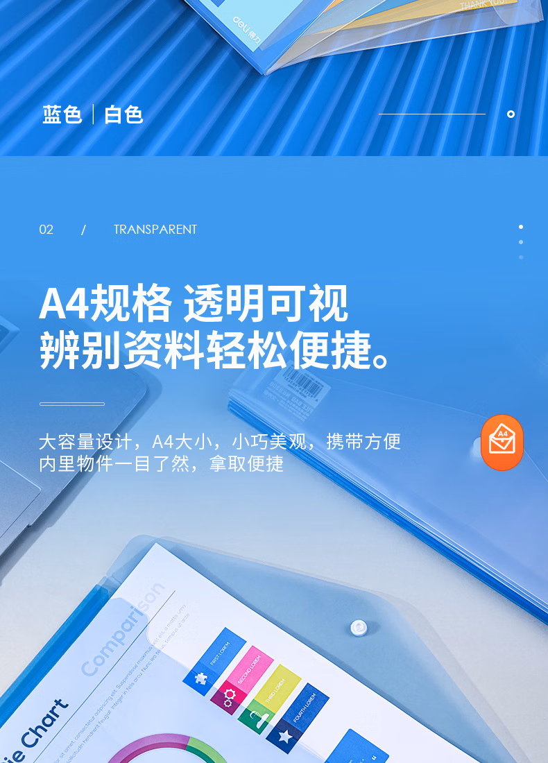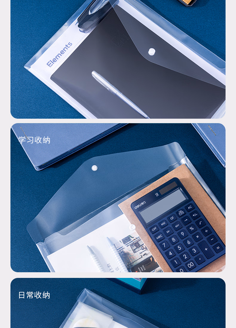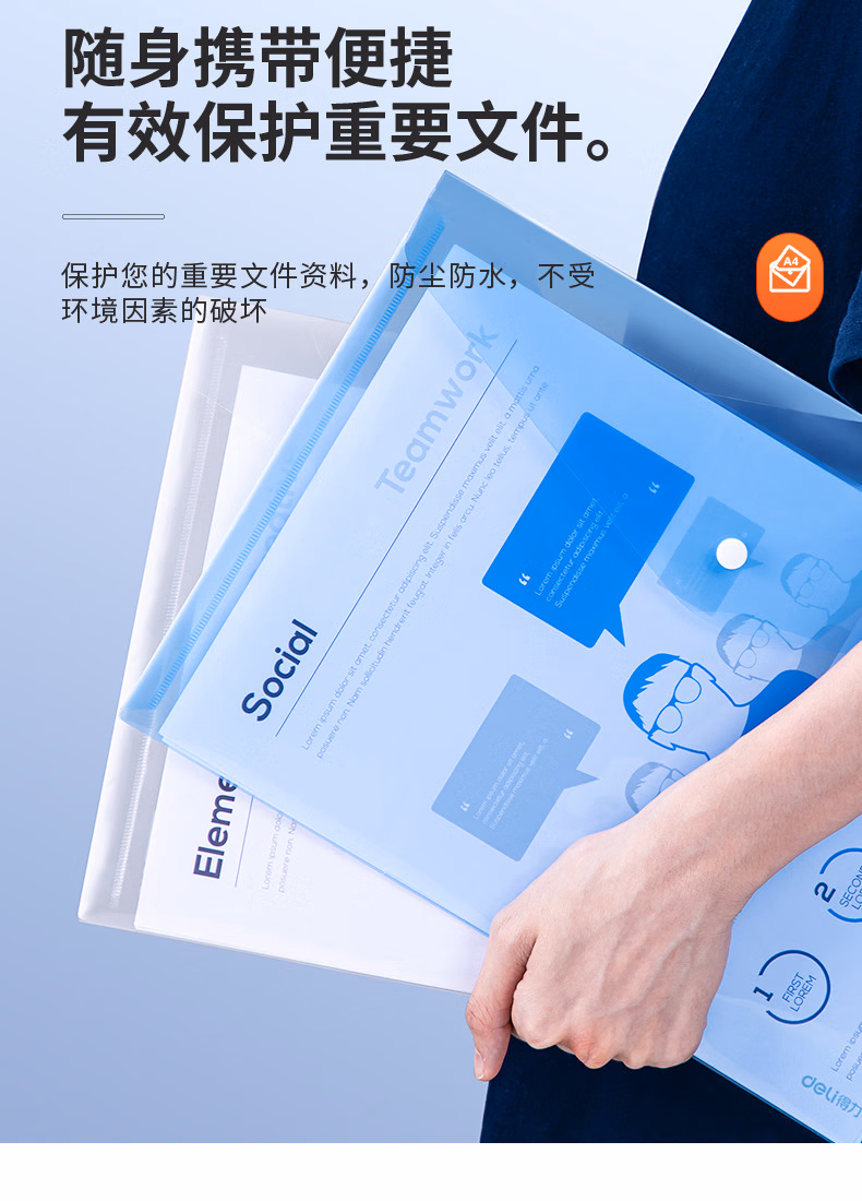 得力佳得力8308文件袋A4资料收纳文件夹纽扣防水塑料透明文件袋档 标签款透明文件袋 A4
