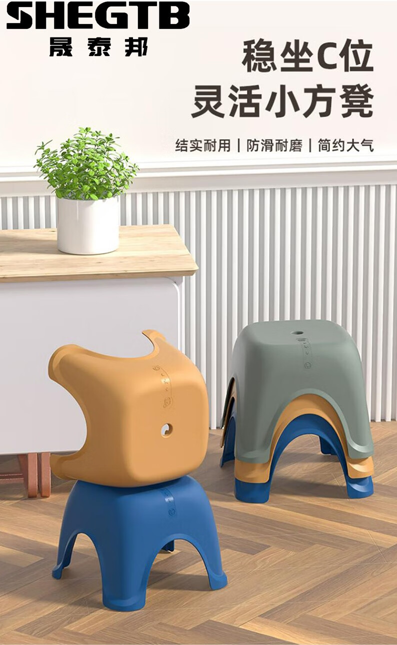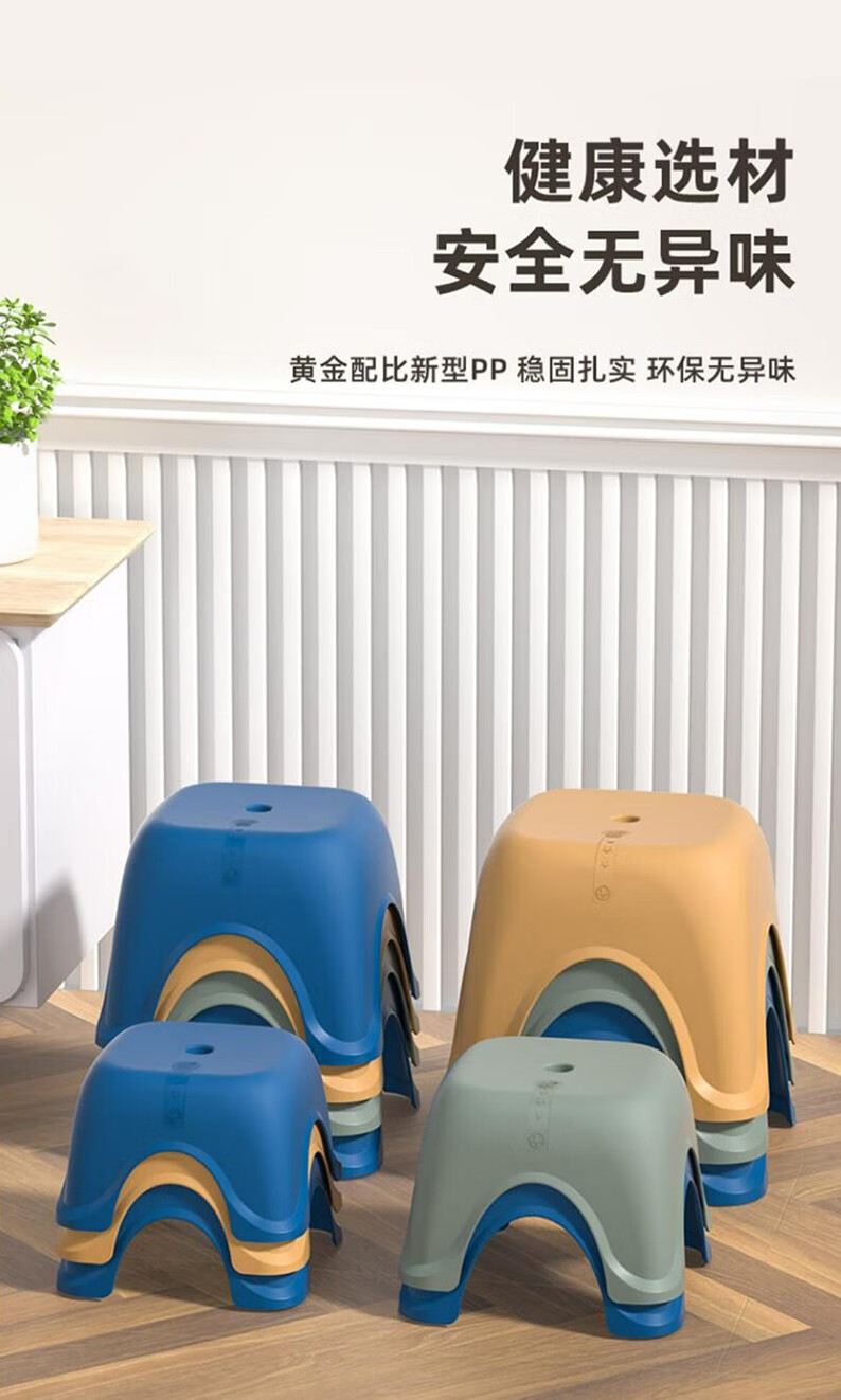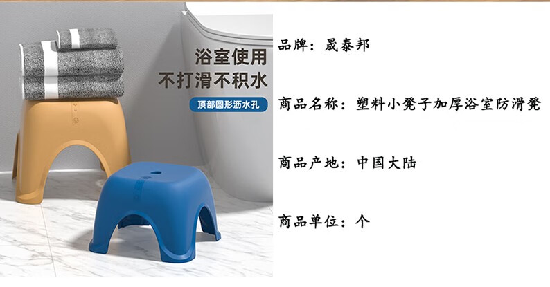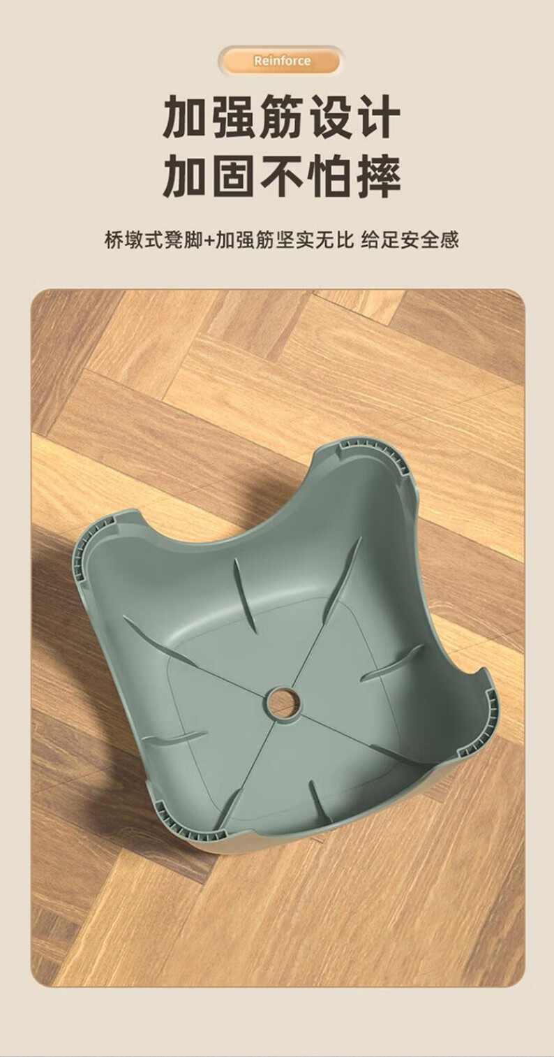 晟泰邦 塑料小凳子加厚浴室防滑凳小 32.5*32.5*26CM雾霾灰【中号】 加厚防滑 单位:张
