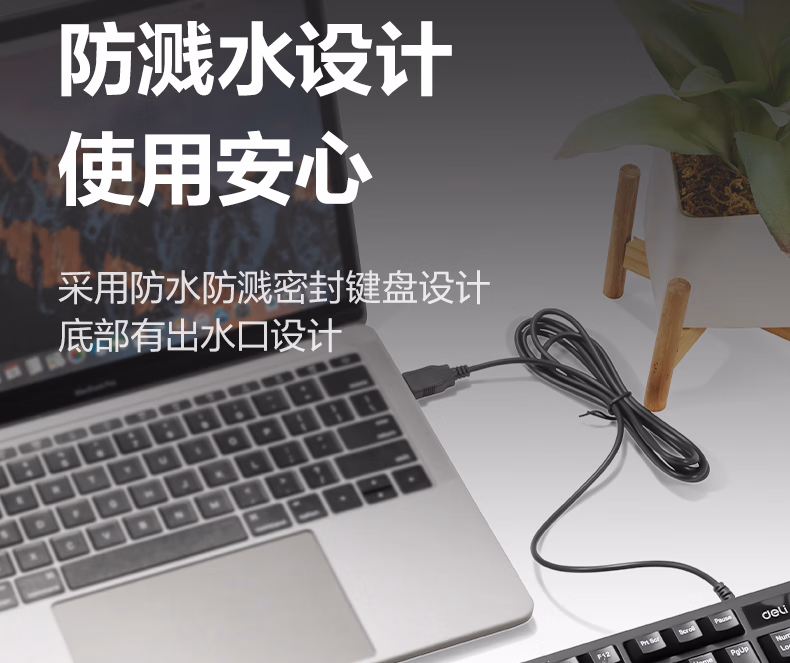 得力(deli)有线/无线键盘 商务办公家用键盘 笔记本电脑台式机计算机外接键盘USB键盘带磁吸支架平板键盘 【有线键盘】防水耐磨款 2168