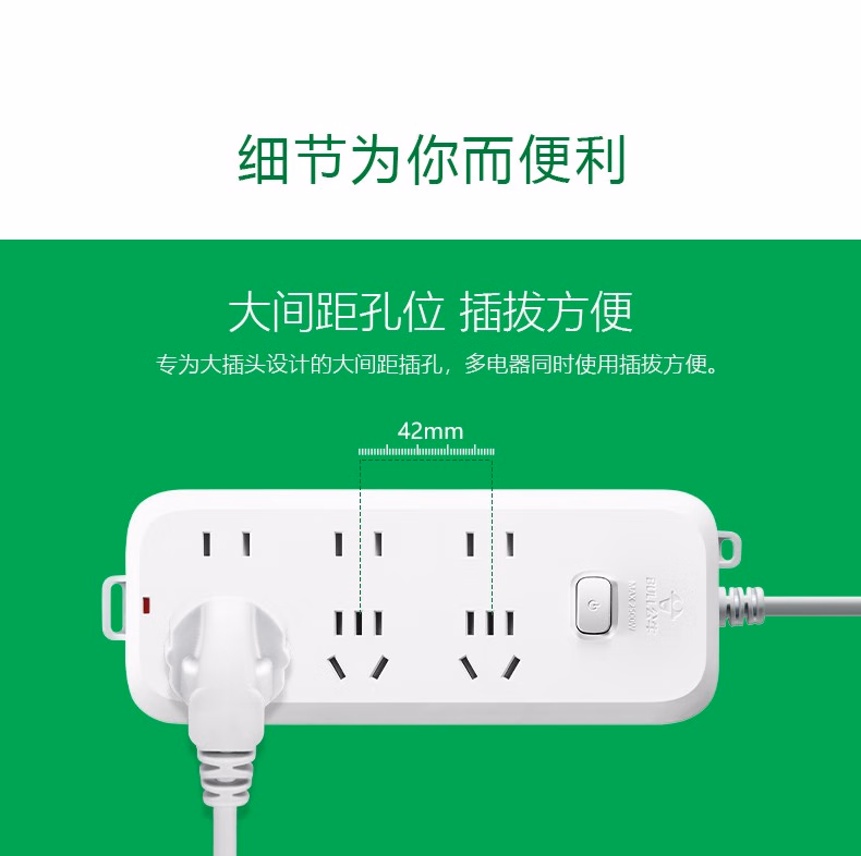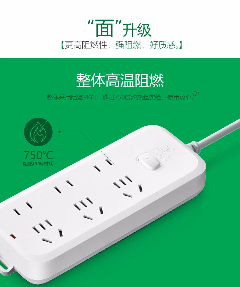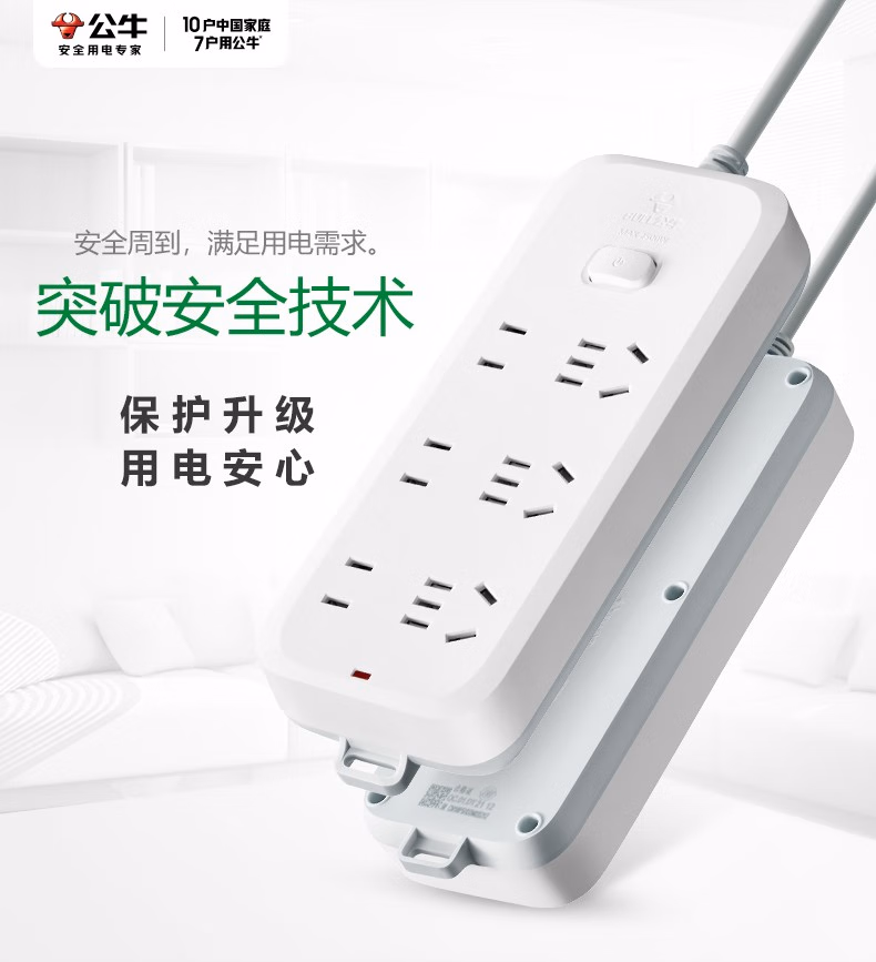 公牛插座插排插线板金牛插班面板多孔6插位六插孔插板带线家用插盘接线拖线板双头插排插板多功能 6插位5米603