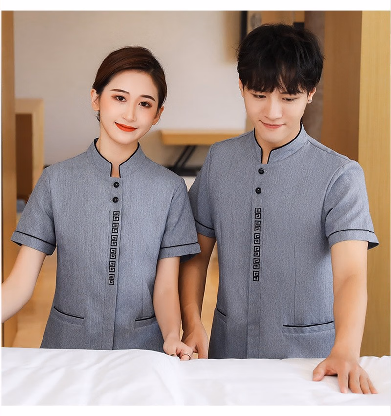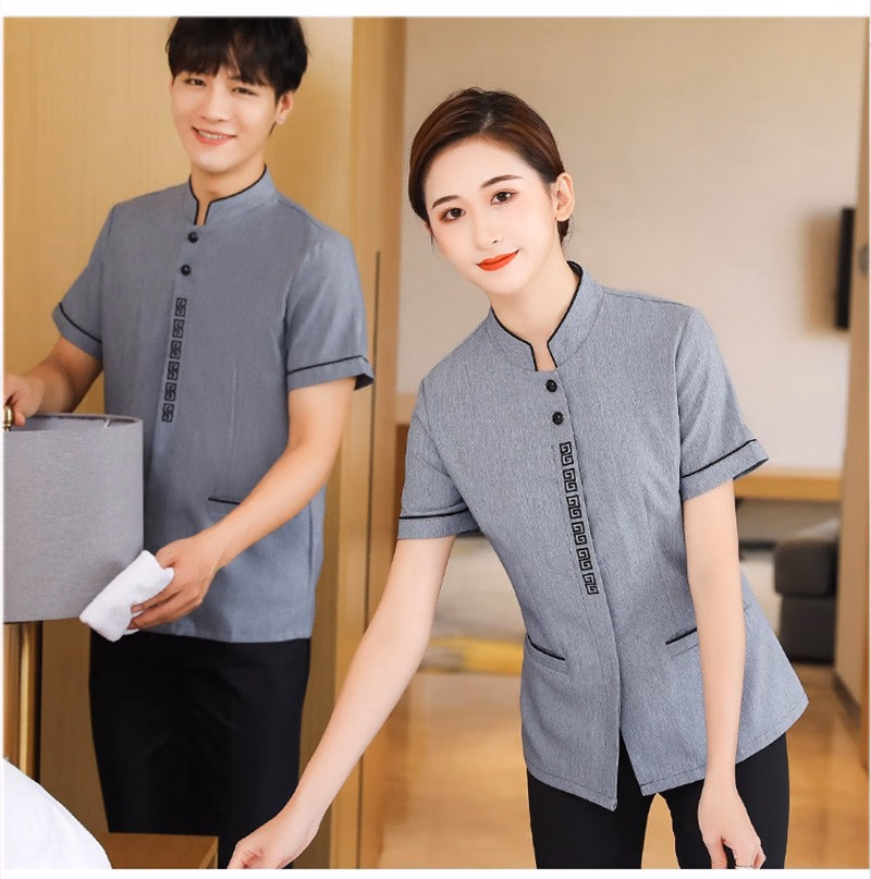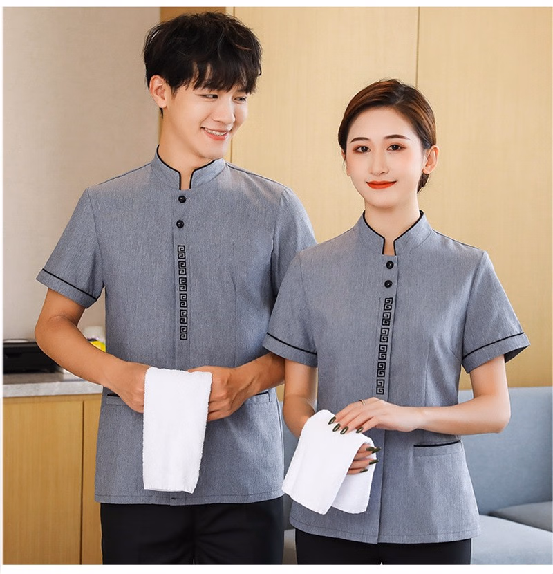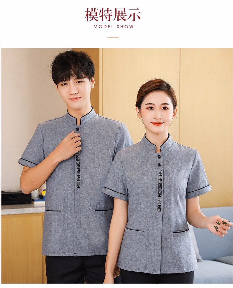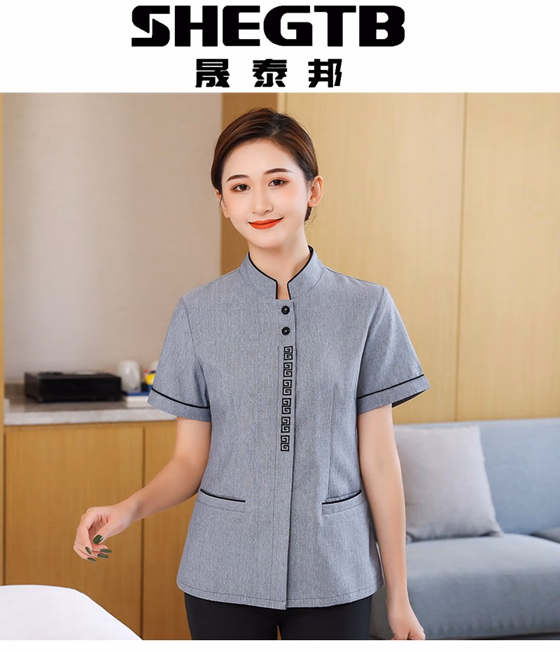 晟泰邦 保洁工作服夏季男女款酒店客房清洁员衬衣六格 灰色(L-6XL可选 下单备注)单位:件