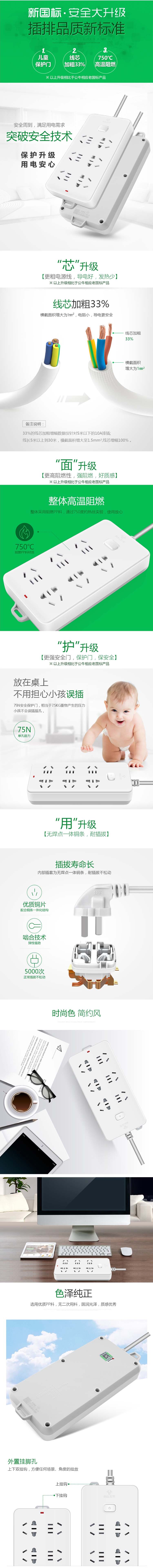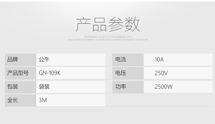 公牛 GN-109K 插线板 总控全长 6位 3米 3个起订 单位:个