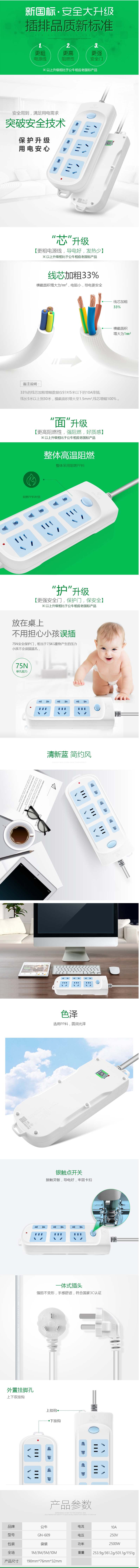 公牛 GN-609 插线板 总控 6位3米 3个起订 单位:个