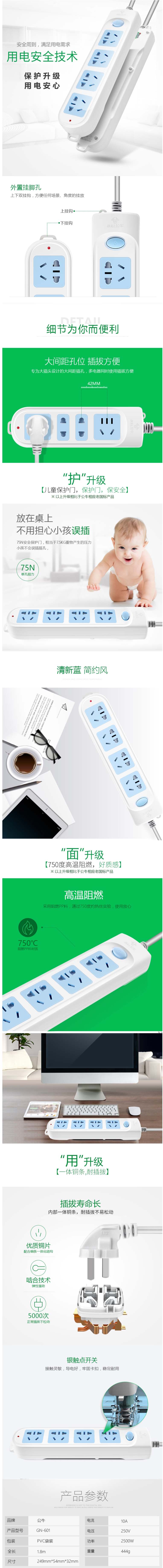 公牛 GN-601 插座 总控 4位1.8米 3个起订 单位:个
