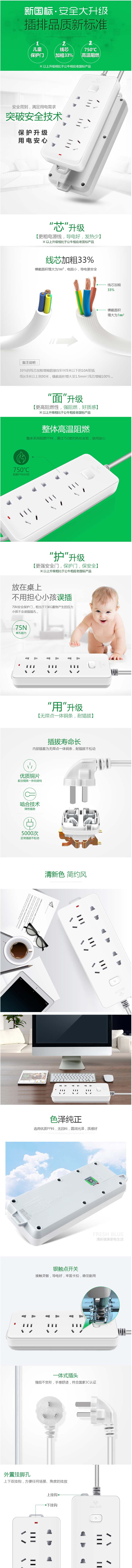 公牛 GN-402 新国标插座 总控开关 6位5米