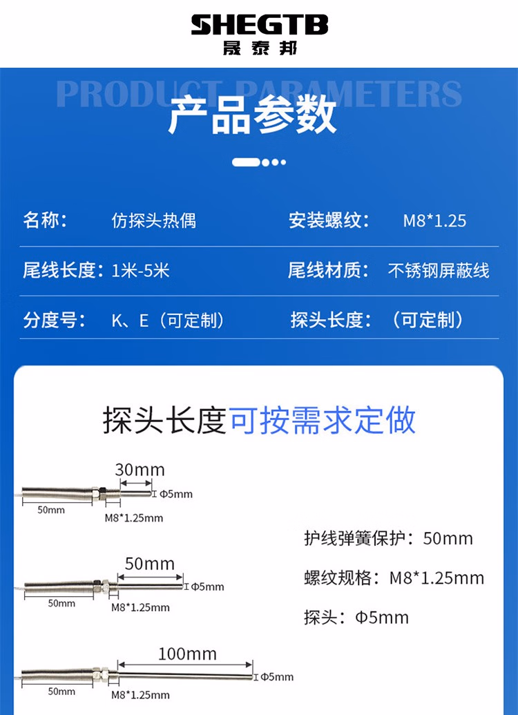 晟泰邦 探针式K型热电偶WRNT-201/187防水热电偶探头带屏蔽线温度传感器 探针30MM 1米线 单位:根