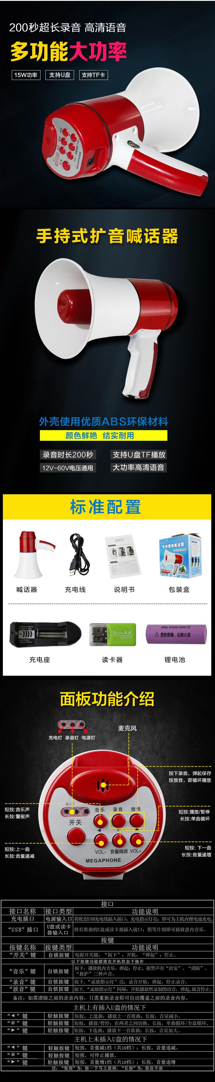 谋福 90 手持扩音器 15W大功率 红白色 单位:个