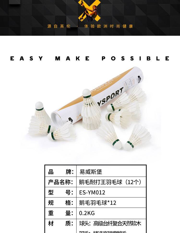 易威斯堡(EasySport)鹅毛耐打王羽毛球(12个) ES-YM012 单位:桶