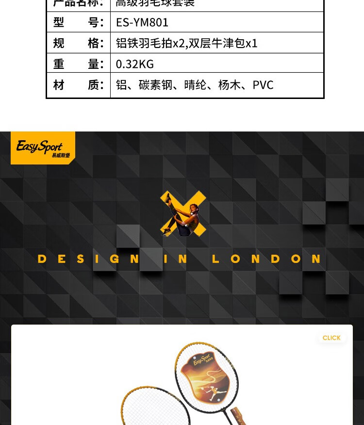 易威斯堡(EasySport)高级羽毛球套装 ES-YM801 单位:套