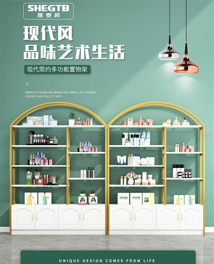 晟泰邦 化妆品展示柜货架展示架产品美容院展柜柜子陈列柜架子美发货柜 B款160*30*2.13cm 平板门 单位:套
