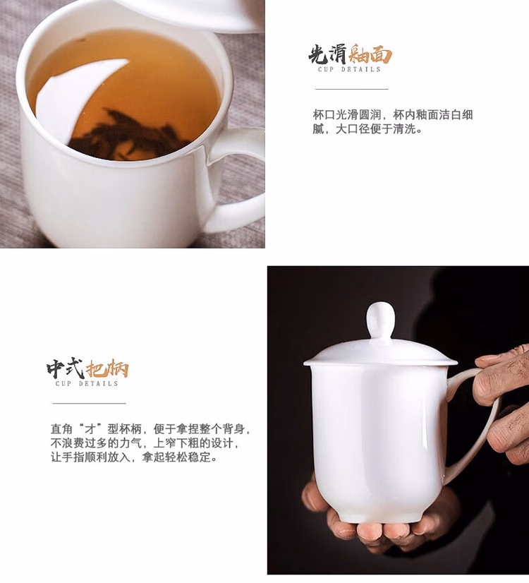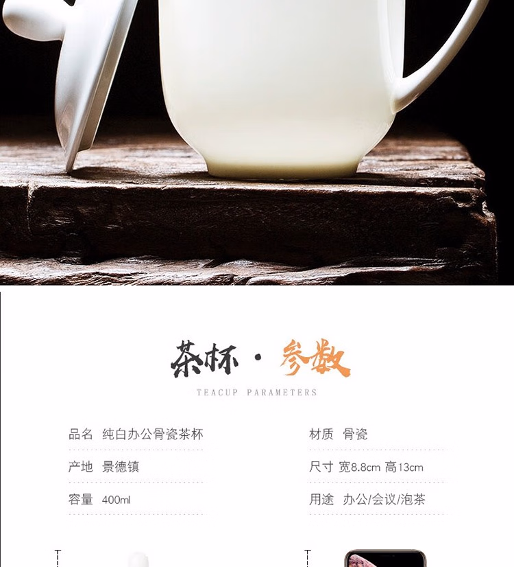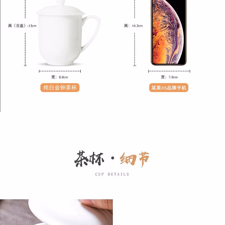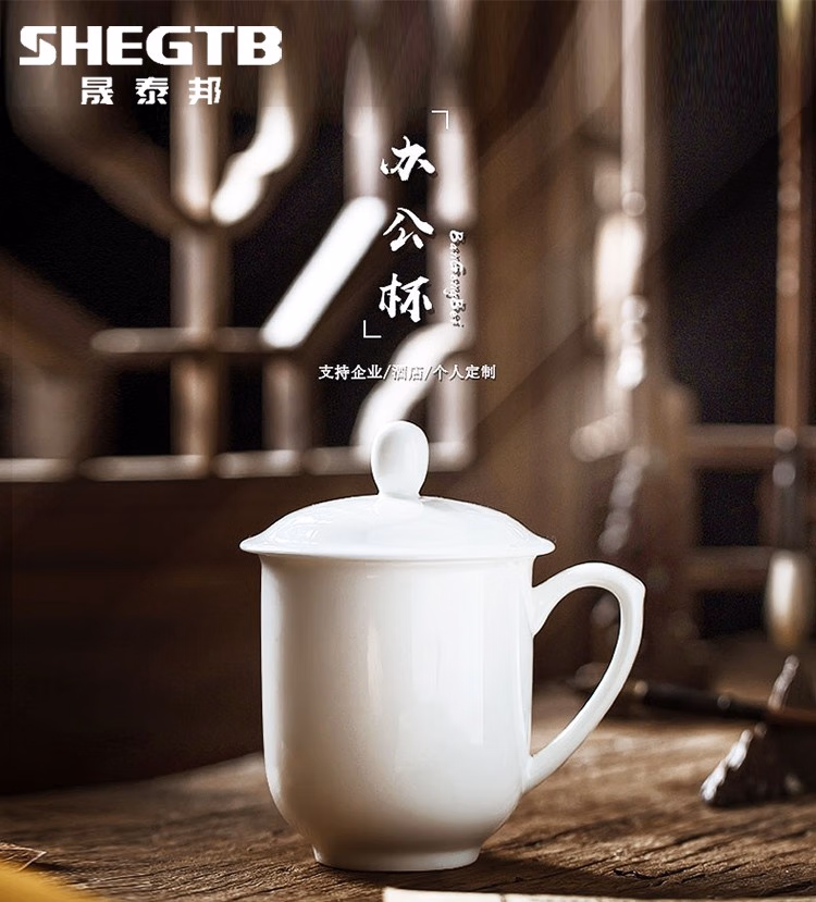 晟泰邦 纯白骨瓷会议办公茶杯泡茶杯子带盖 纯白-会议杯-带碟 单位:套