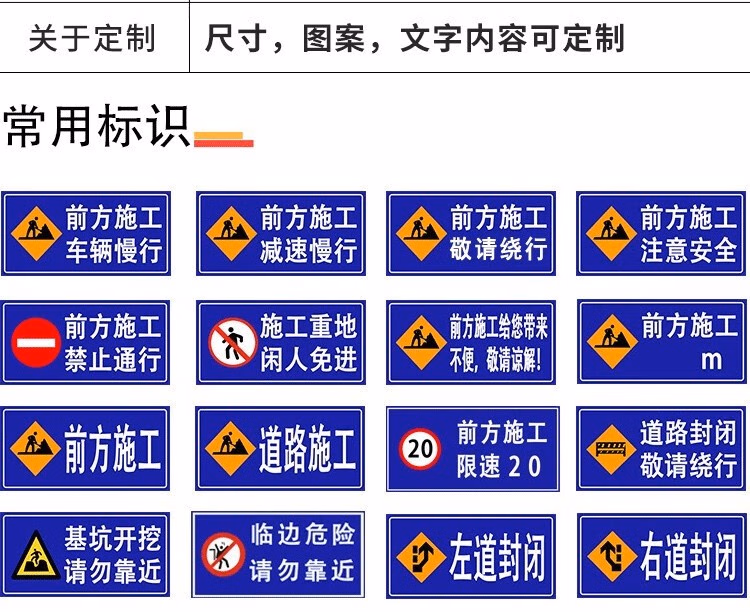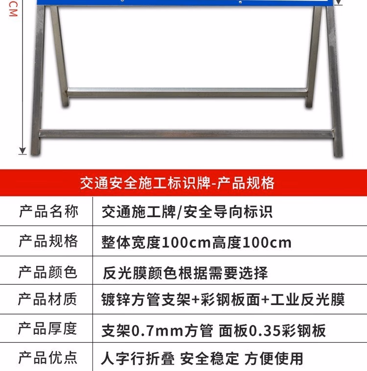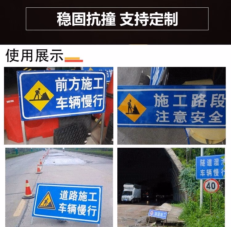 晟泰邦电力施工标志牌 注意安全警示牌 车辆慢行道路施工指示反光标志牌 铝板蓝白反光:电力施工注意安全宽度100cm高度100cm 单位:个