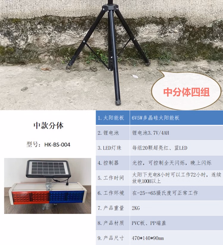 晟泰邦太阳能LED爆闪灯工地道路夜间移动路障灯施工灯路口警示灯频闪灯 中分体4组+移动支架 单位:套