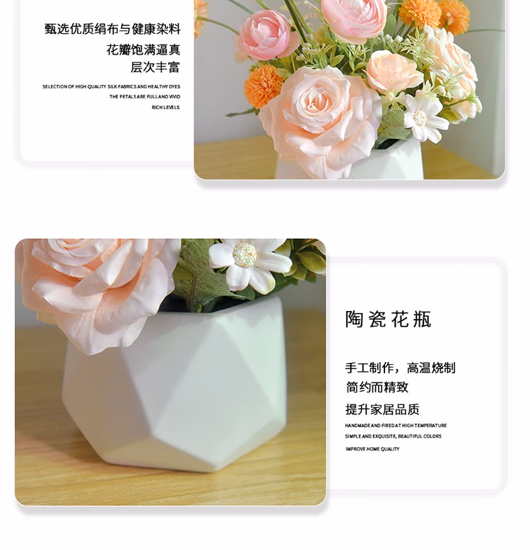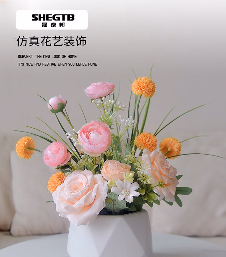 晟泰邦 假花仿真花客厅家居装饰品玫瑰花室内餐桌花摆设盆栽轻奢花艺摆件 粉色爱恋 单位:盆