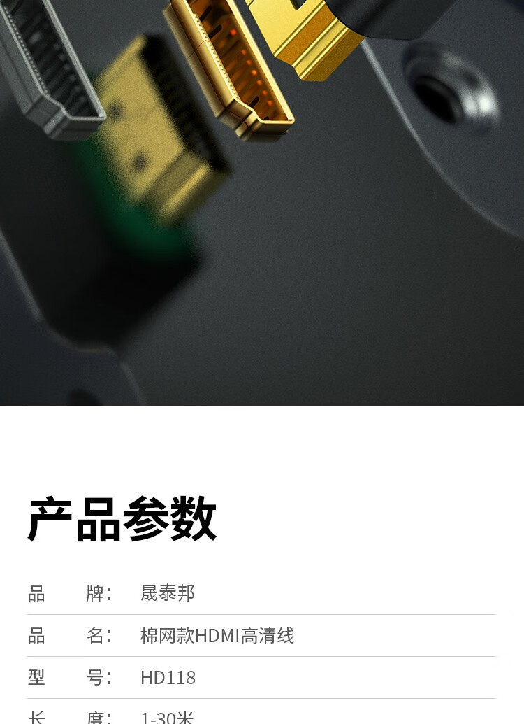 晟泰邦 HDMI线 4k数字高清线 3D视频线 笔记本电脑机顶盒连接电视投影仪显示器数据连接线 15米40416 单位:条