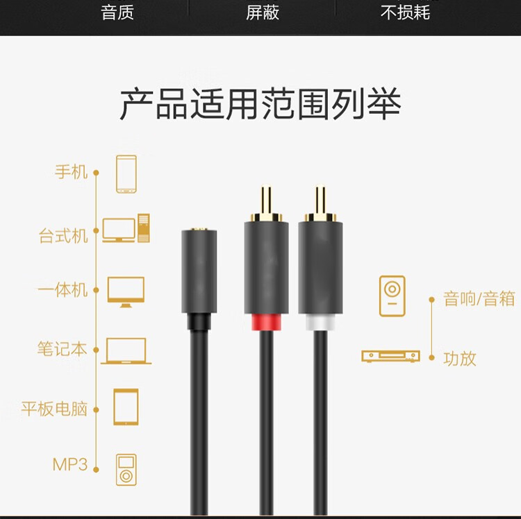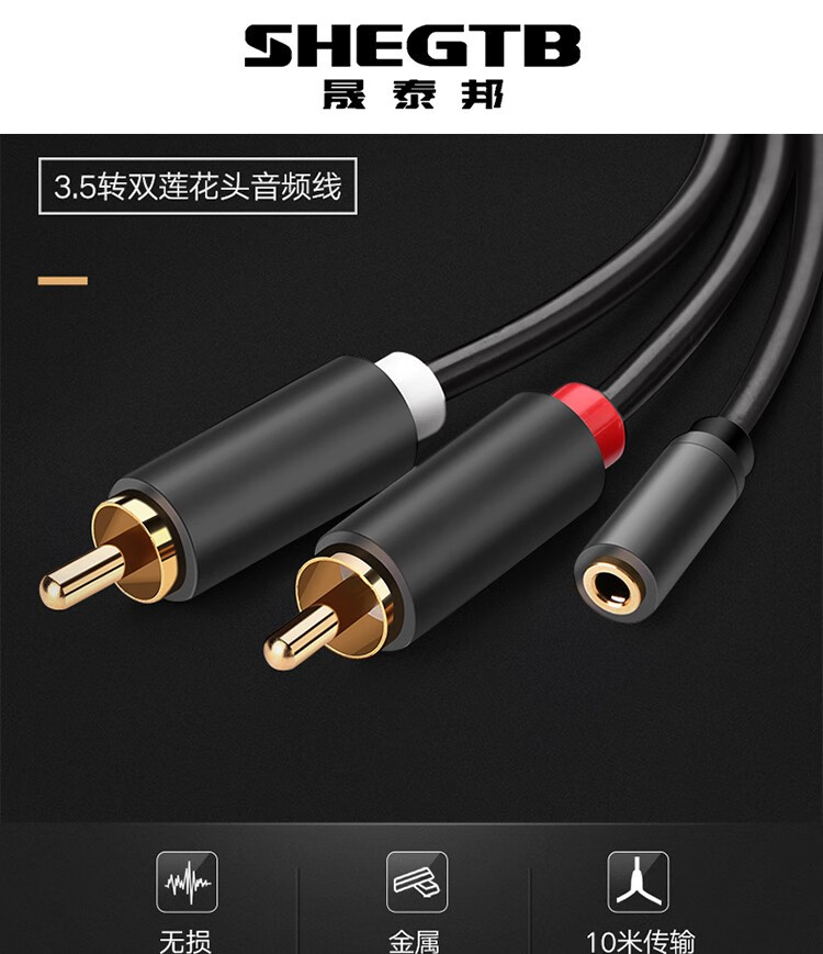 晟泰邦 3.5mm母转双莲花公头音频线 2RCA红白音频线一分二连接线 手机电脑接音响箱功放转接线 10561 0.2米 单位:条