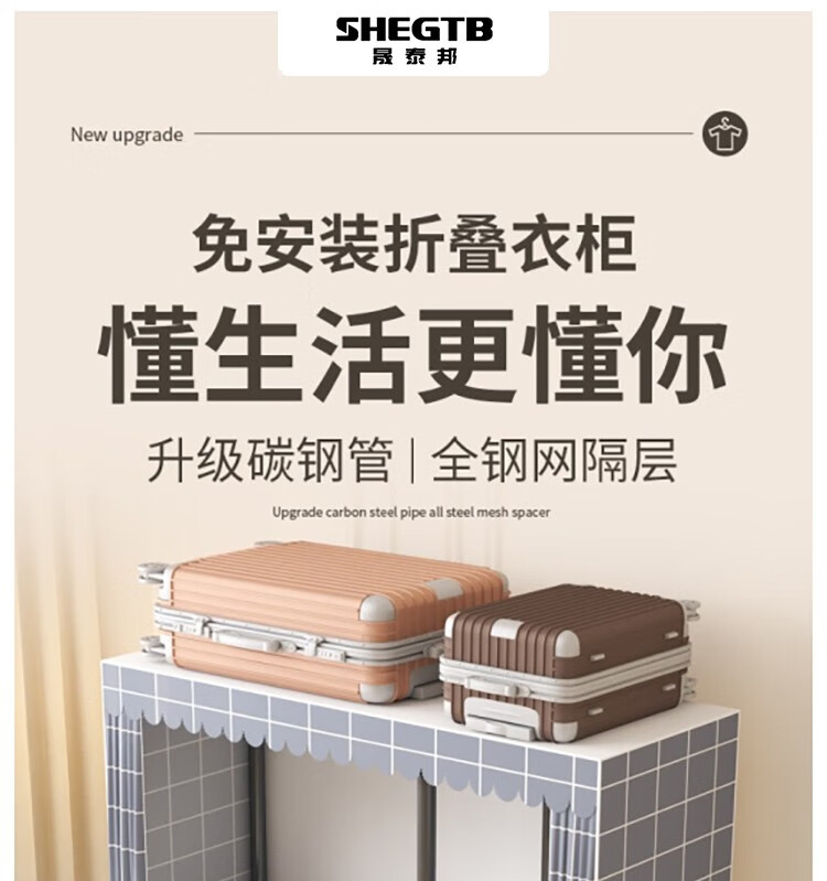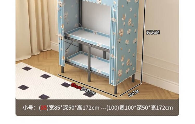 晟泰邦 衣柜简易免安装折叠布衣柜加粗全钢架结构结实耐用加厚布艺挂衣柜 85CM格调 单位:个