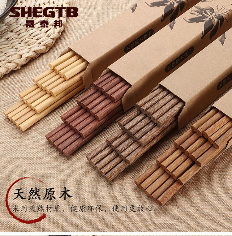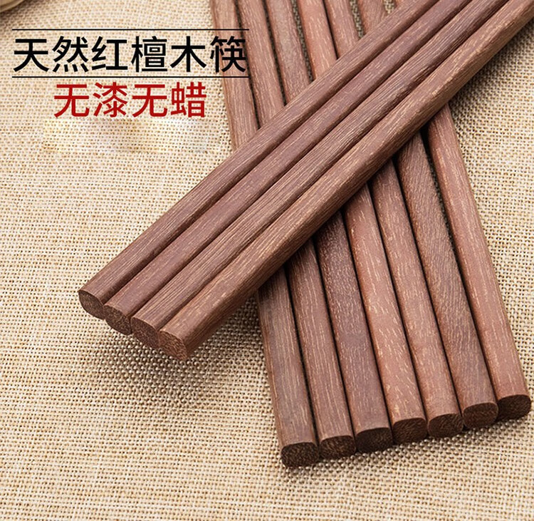 晟泰邦 天然原木无漆无蜡实木筷子饭店红檀木鸡翅木筷子 黄檀木筷子(10双装) 单位:盒
