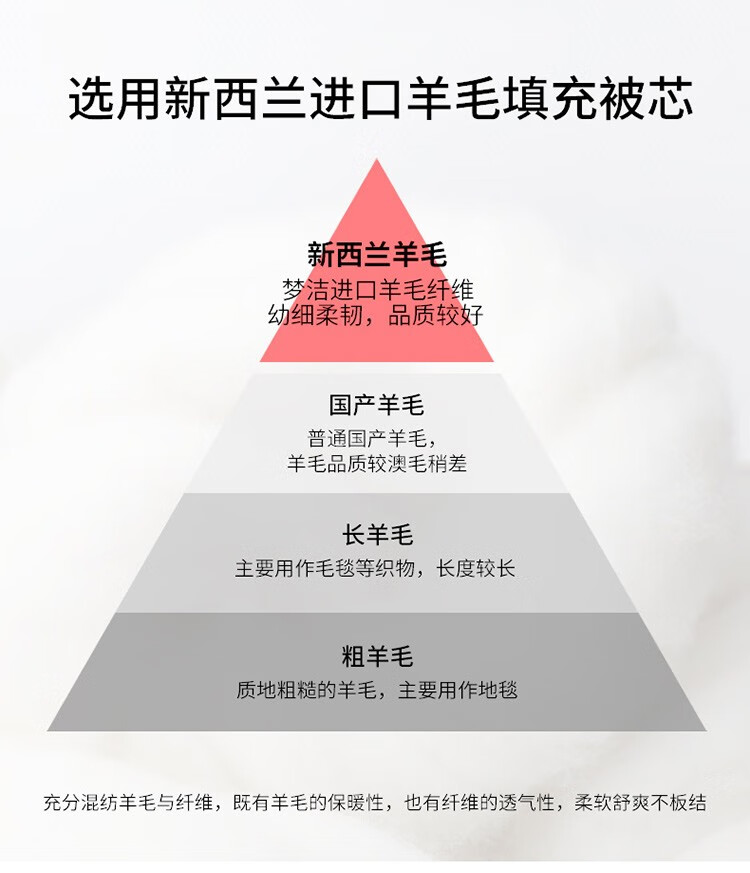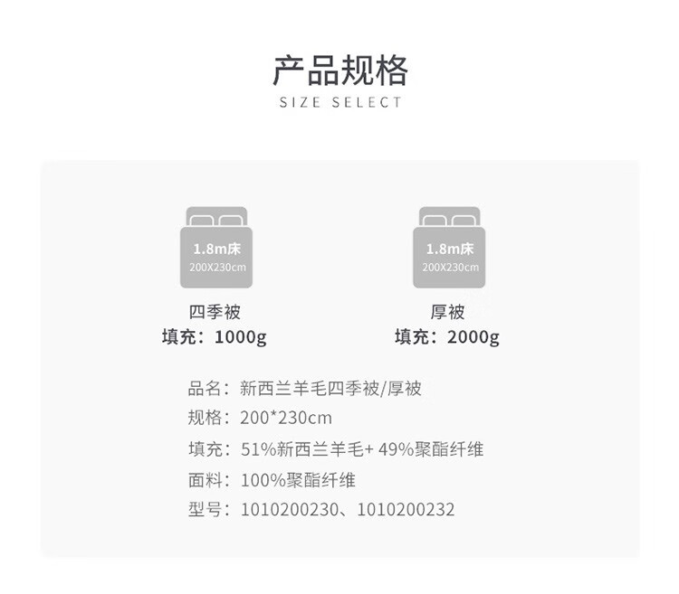 梦洁家纺 梦洁磨毛被芯双人被tg 新西兰羊毛四季被 200*230 单位:条
