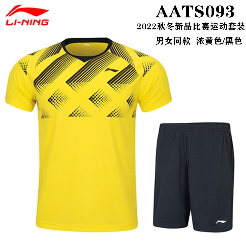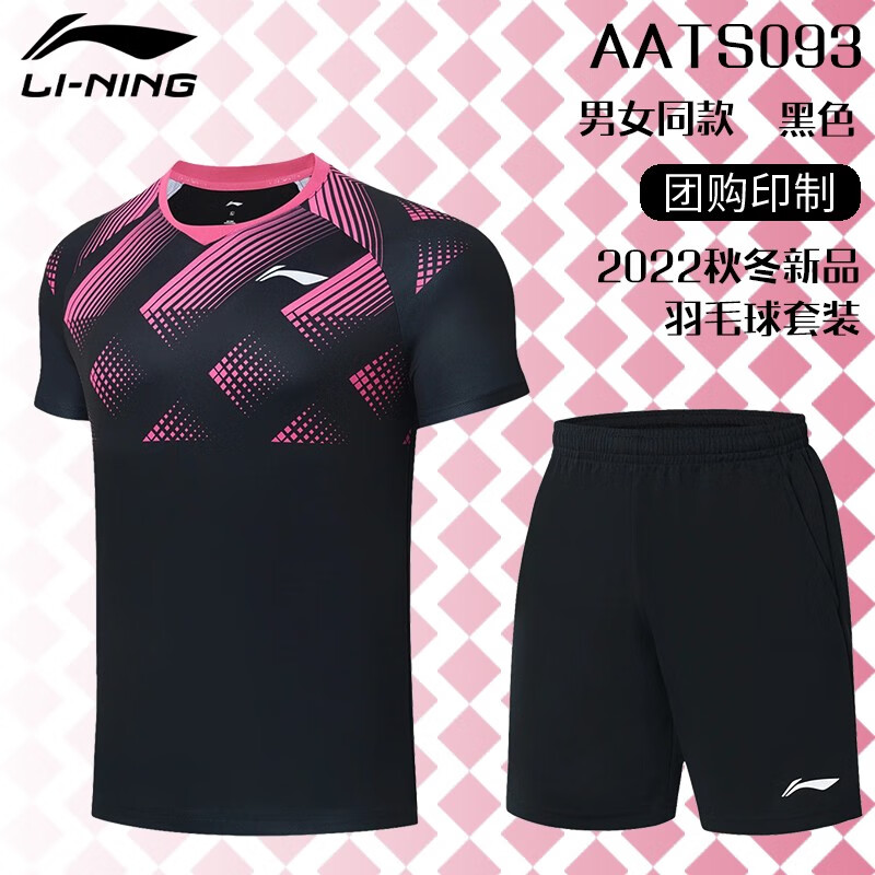 李宁羽毛球服套装男女款短袖夏比赛运动服透气速干排汗团体 中性款AATS093-4标准黑(S-3XL可选 下单备注) 单位:套