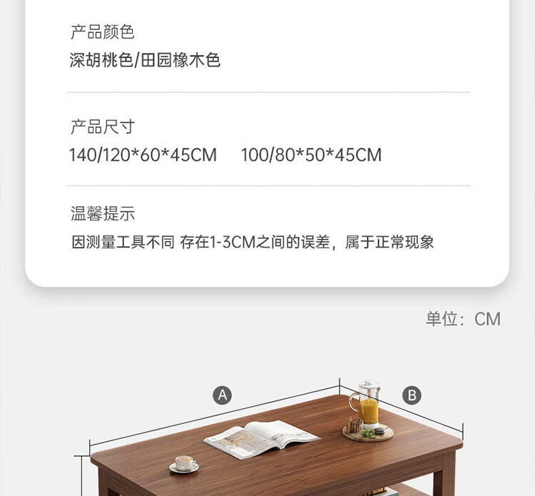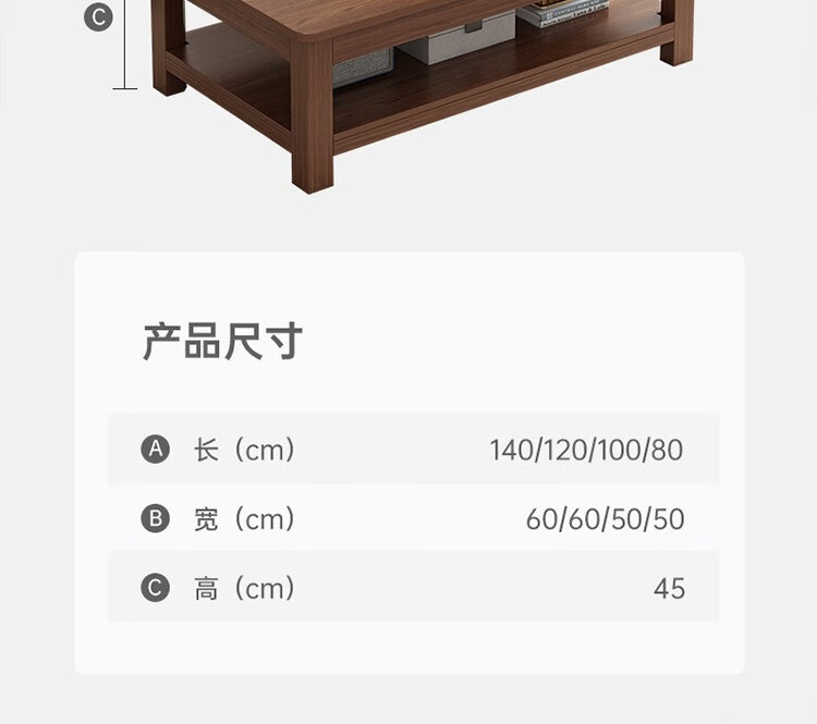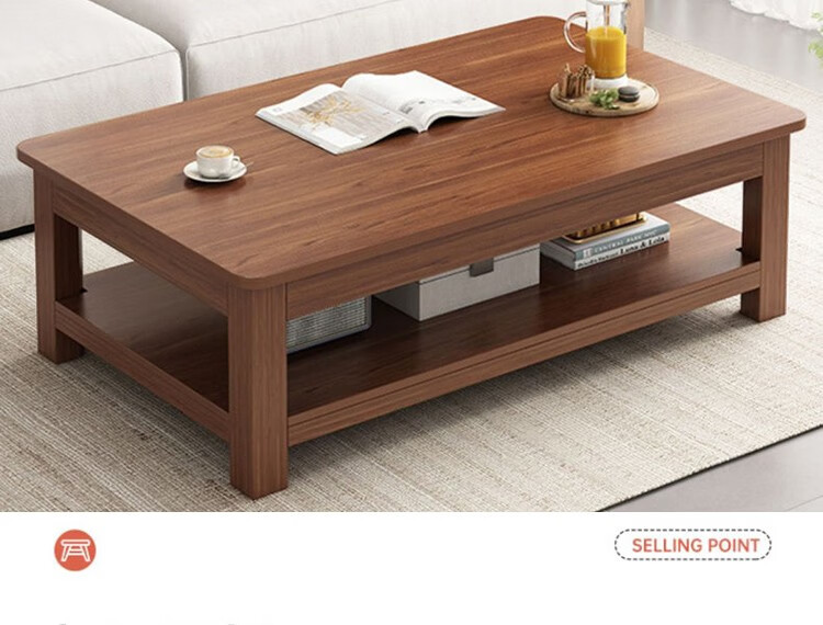 晟泰邦 茶几客厅家用实木腿茶桌办公室现代简约桌子小户型中式长方形茶台 大杉胡桃色120*60*45cm 单位:张