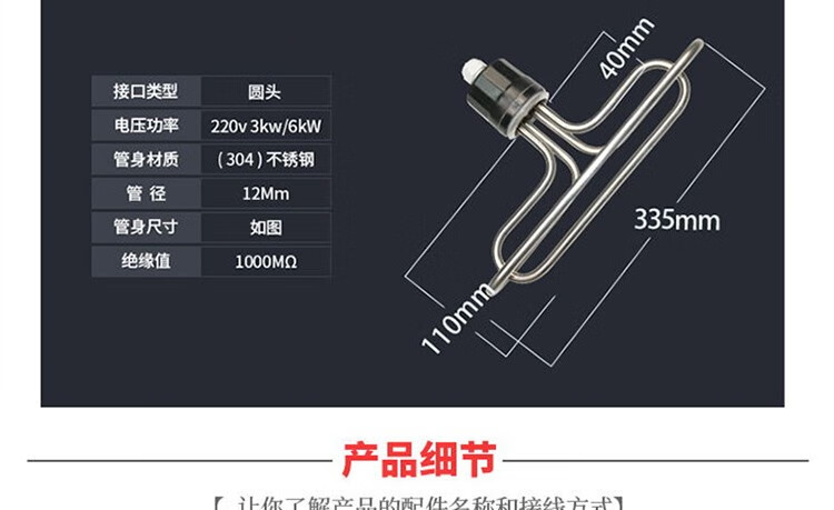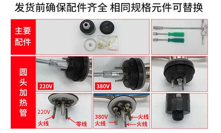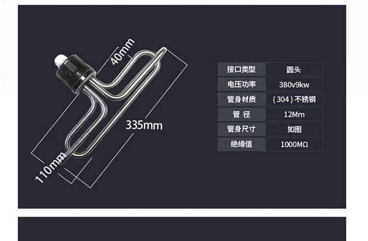 晟泰邦 圆头T型蒸饭车加热管 蒸饭机/柜/蒸箱/电热管 T型380V9KW 不锈钢材质 单位:个