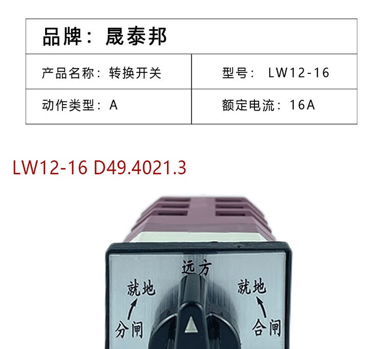 晟泰邦 转换开关LW12-16 D49 4021/3自复位高压柜分合闸电源切换16A 面板带中文字 单位:个