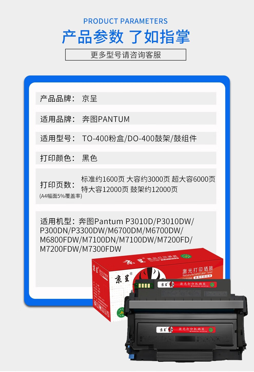 京呈TO-400粉盒适用奔图m7300fdn M7100DW/DN 6700DW/d硒鼓P3010D 【6000页】TO-400X超大容量粉盒 单位:支