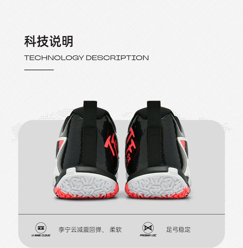 李宁(LI-NING)2023新品羽毛球鞋贴地飞行Ⅱ LITE男女运动鞋减震回弹 AYTT003-2标准白/黑色/荧光焰红(36-45码可选 下单备注)单位:双