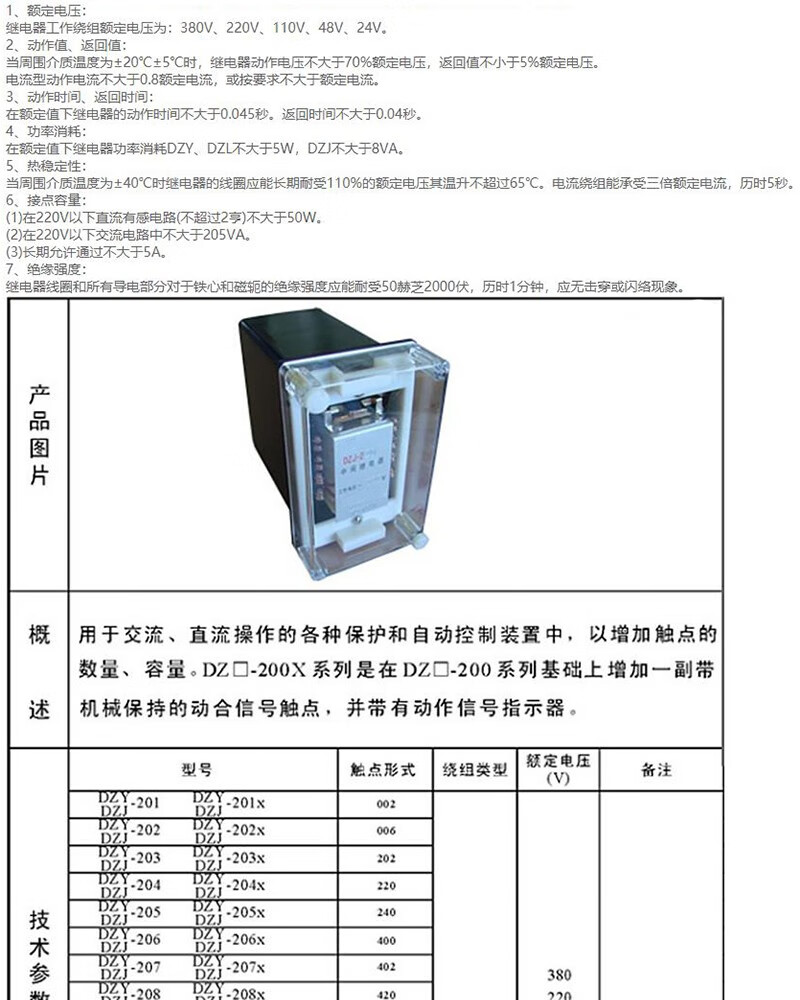 晟泰邦 DZY-201中间继电器 DC220V 板后接线 DZY-201 单位:个