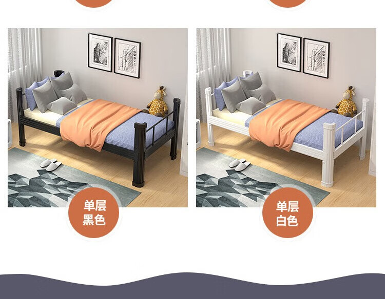 晟泰邦 钢制单人床 员工宿舍单层型材床 白色/黑色 (白色200*100*75CM) 单位: 张